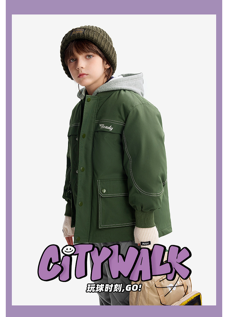 【MQD】男大童冬季新品潮酷休闲保暖连帽羽绒服