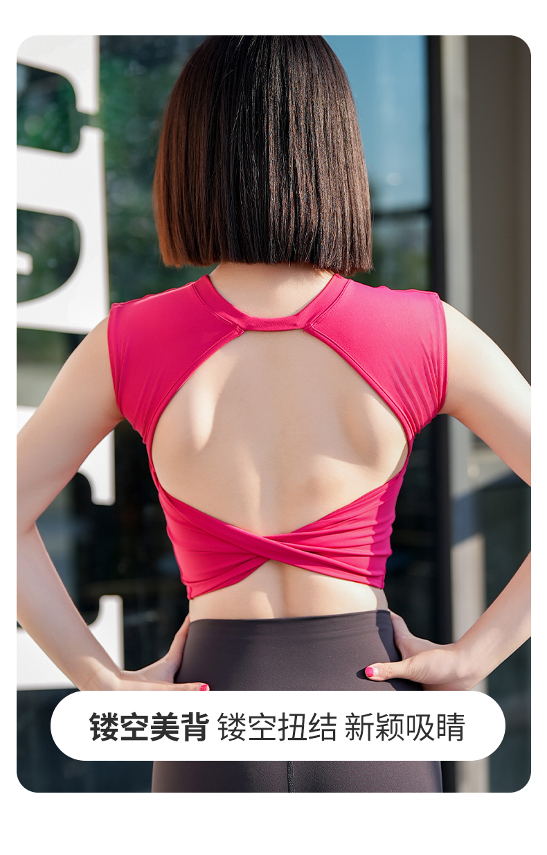 跃牌【安琪拉系列】无袖带胸垫速干防震镂空瑜伽背心BX036