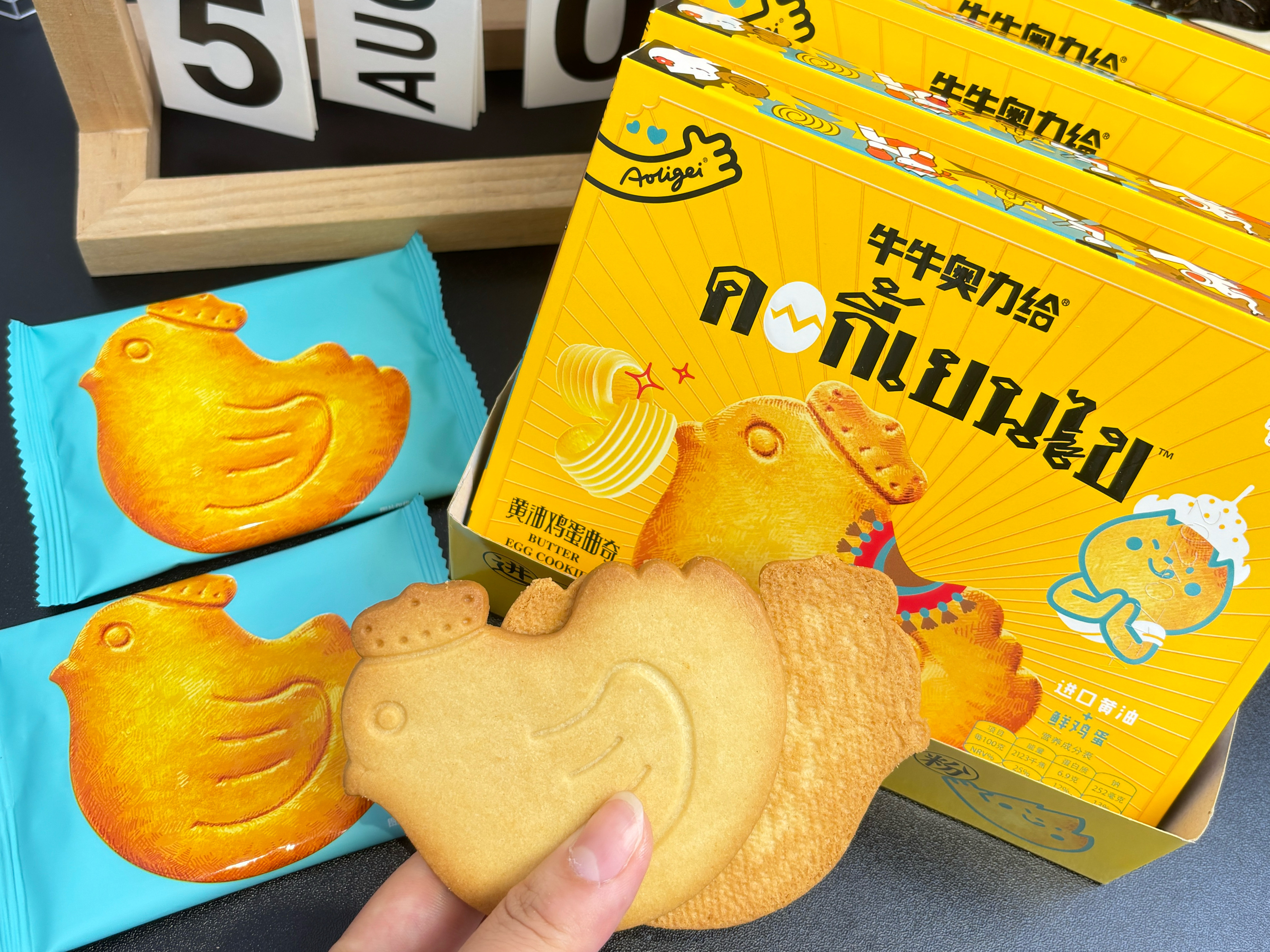 🔥小猫饼干之后又一萌物😂【奥力给·黄油鸡蛋小鸡曲奇】💰29.9到手5盒💥戴皇冠的可爱小鸡🐥进口黄油,奶香浓郁超纯正✅新鲜鸡蛋,蛋香加倍✅0反式脂肪酸