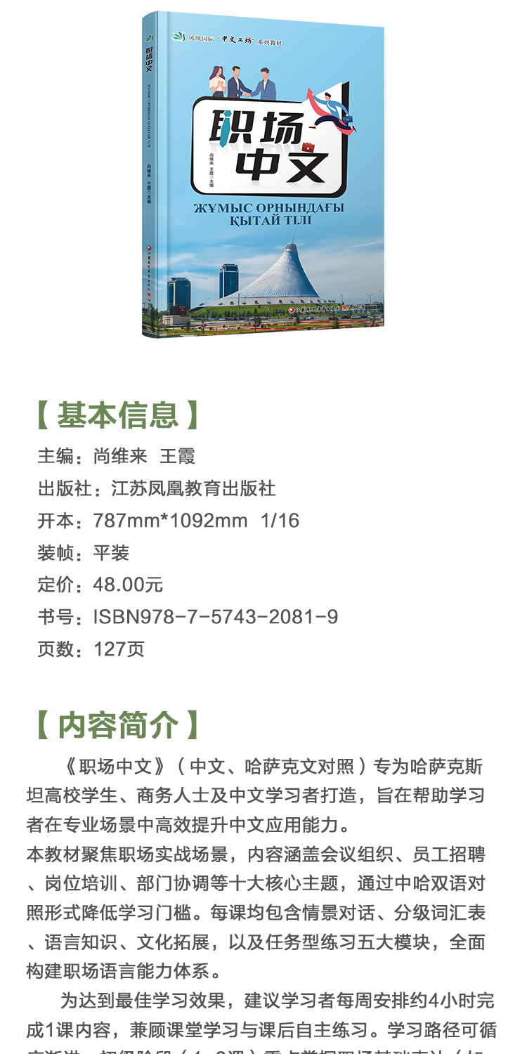 职场中文(中文和乌兹别克语对照版)凤凰国际“中文工坊”系列教材 系统提升职场中文能力 涵盖十大职场主题 江苏凤凰教育出版社