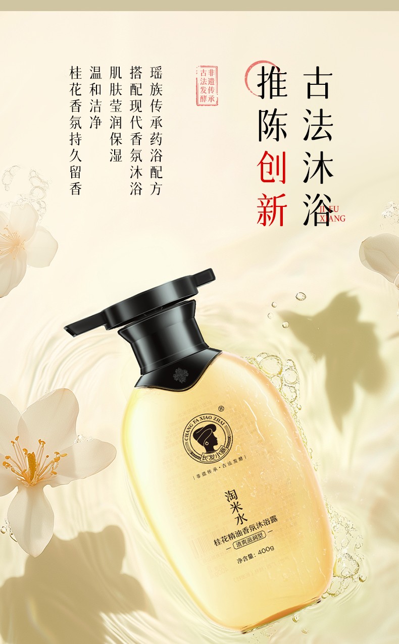 【秒杀】长发小寨 淘米水桂花精油香氛沐浴露(清爽滋润型)400g