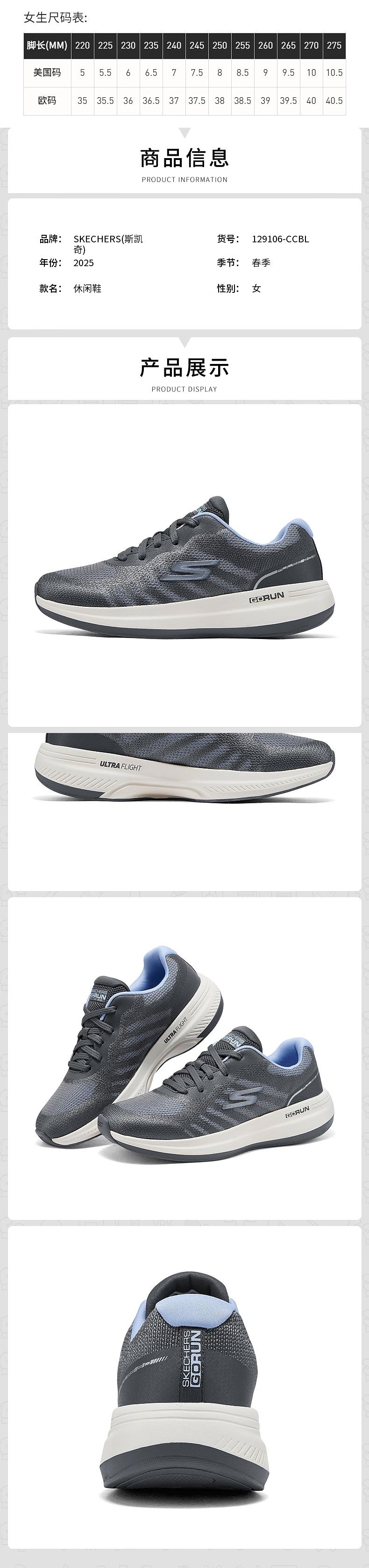 Skechers斯凯奇 女跑步鞋 129106-CCBL