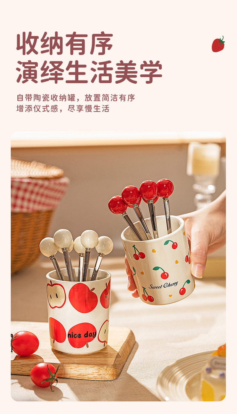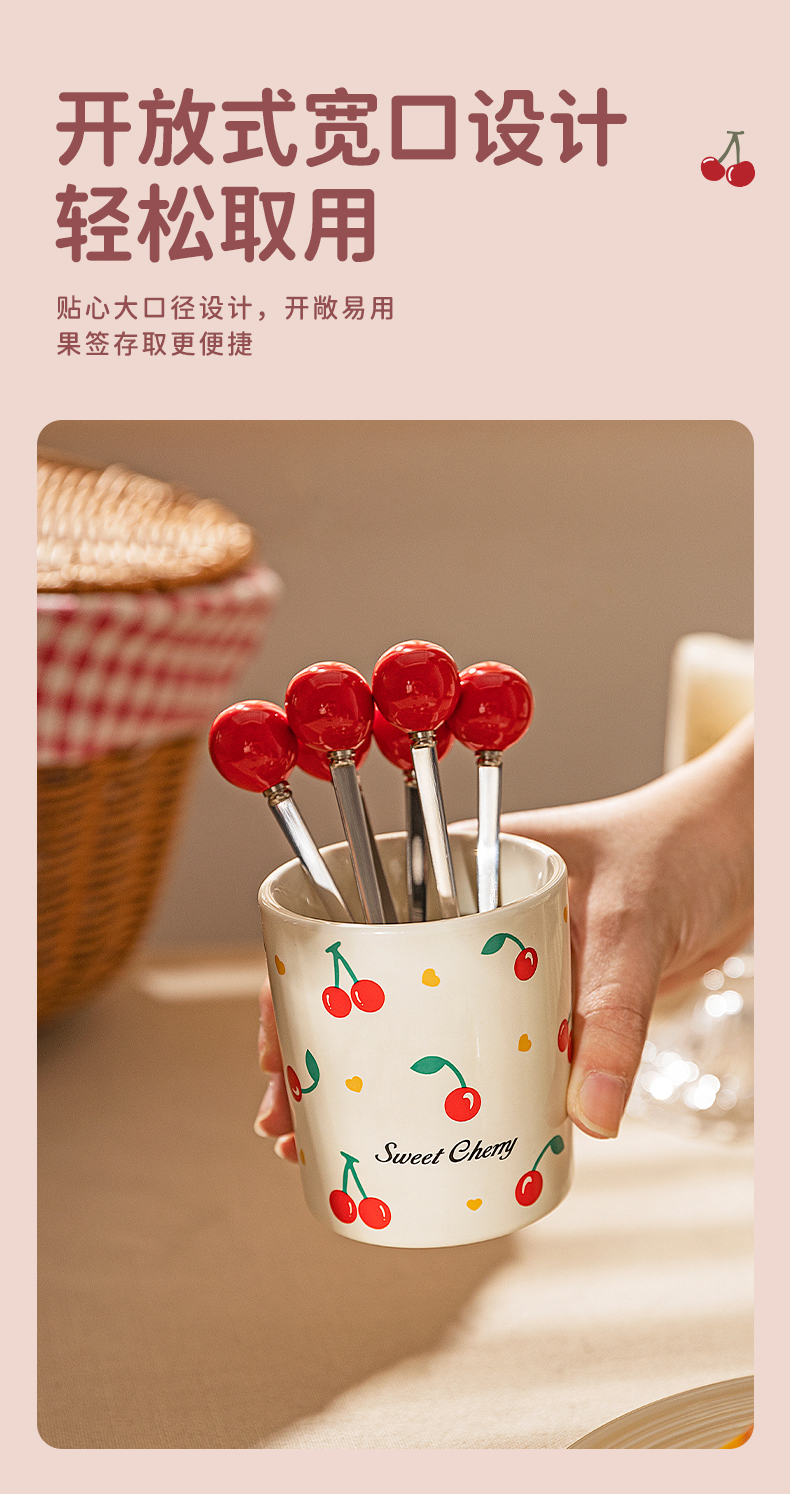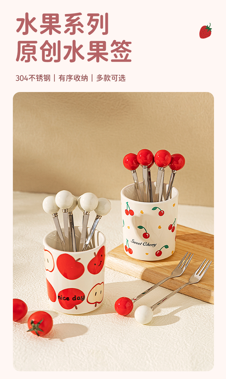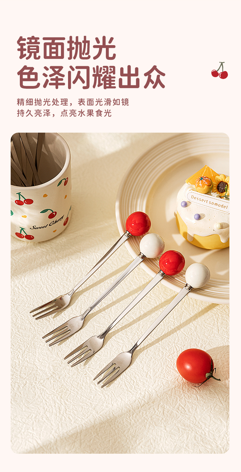 摩登主妇樱桃水果叉子不锈钢水果签收纳罐高级感餐具小叉子蛋糕叉