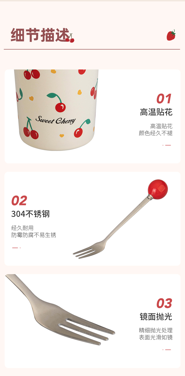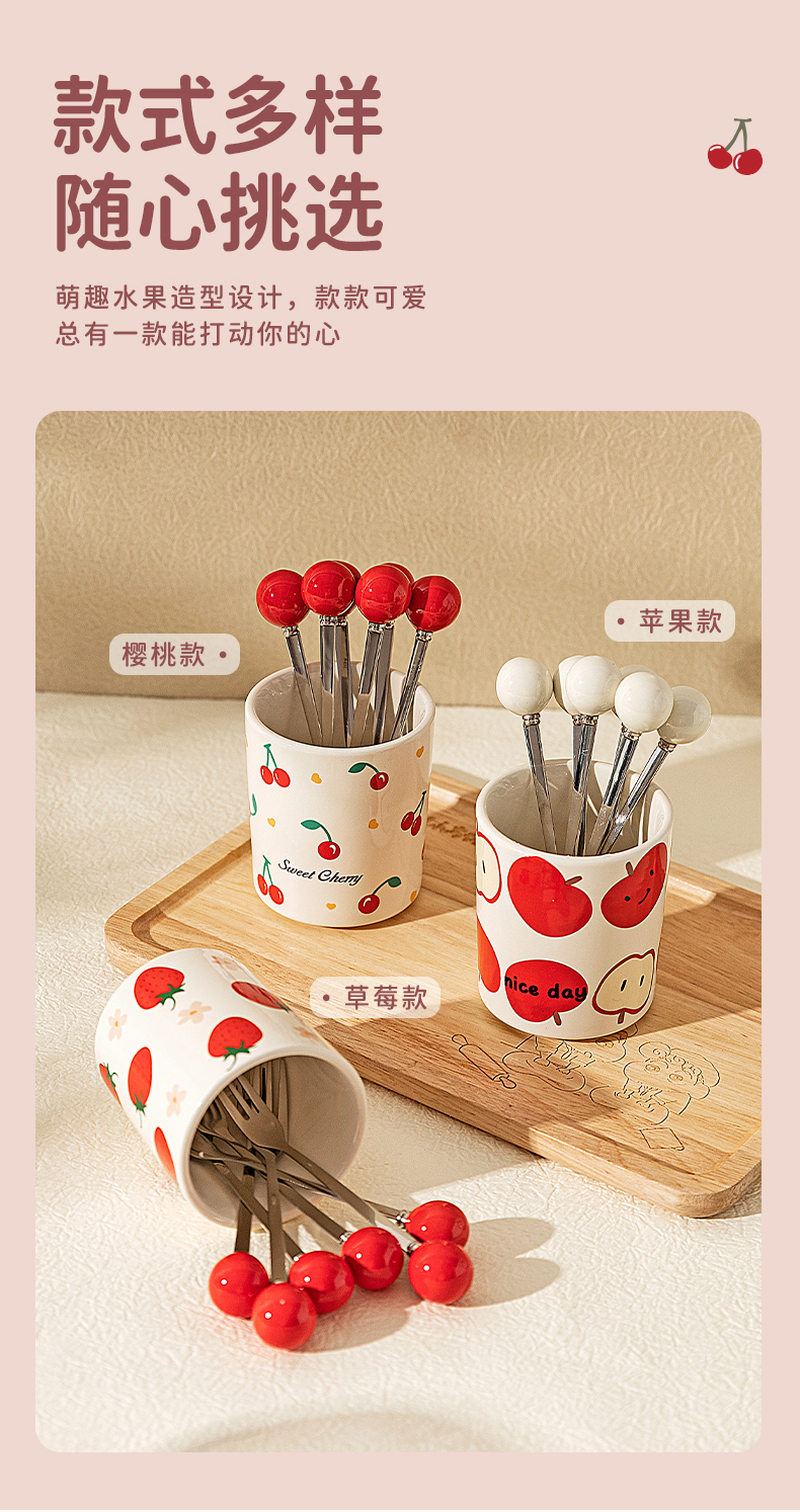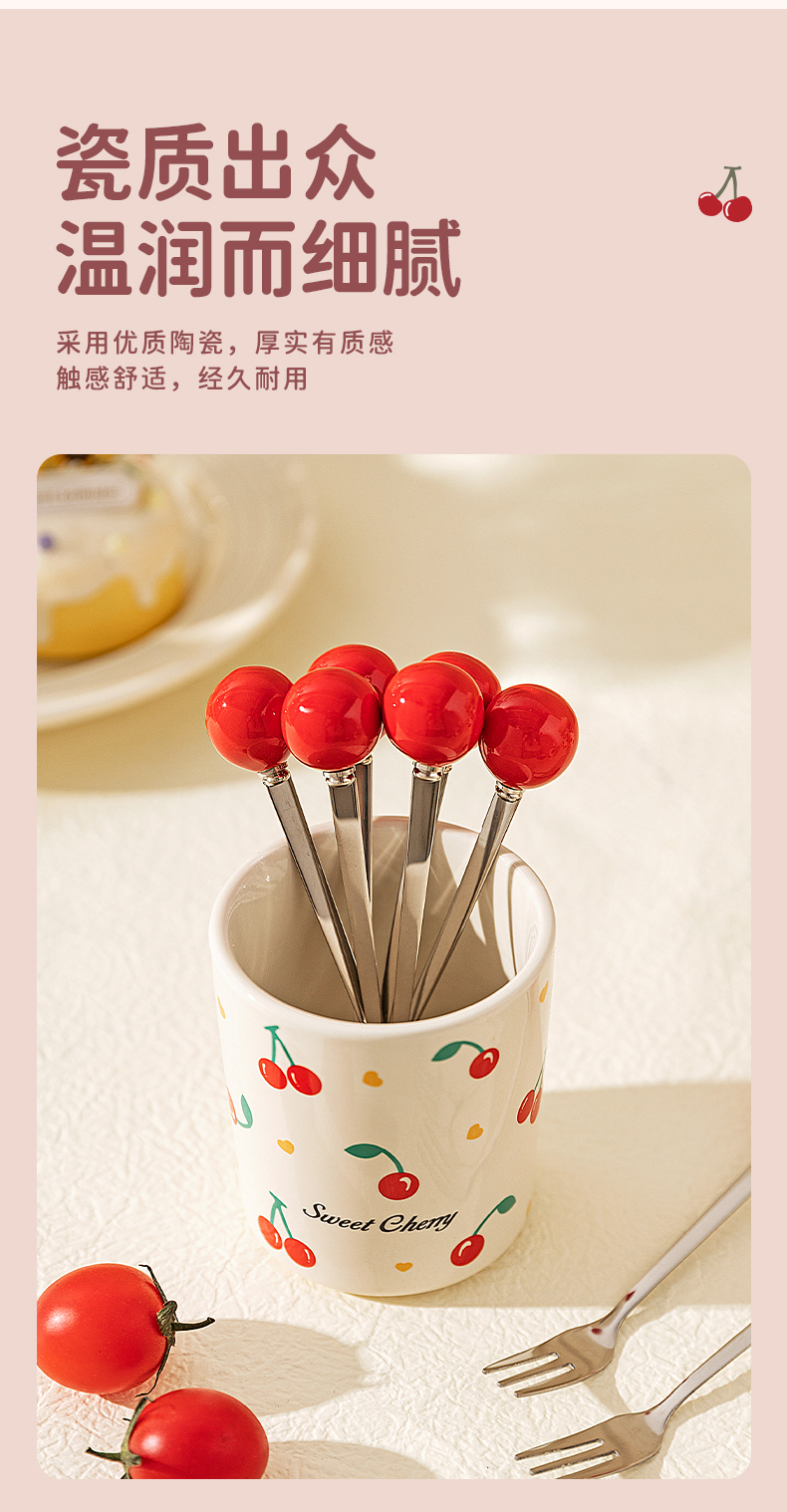 摩登主妇樱桃水果叉子不锈钢水果签收纳罐高级感餐具小叉子蛋糕叉