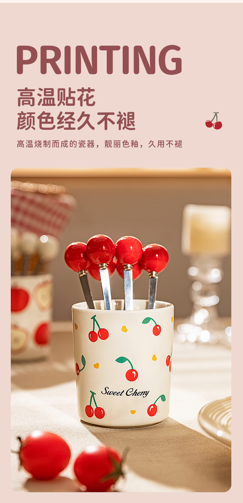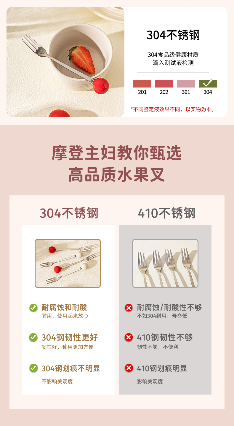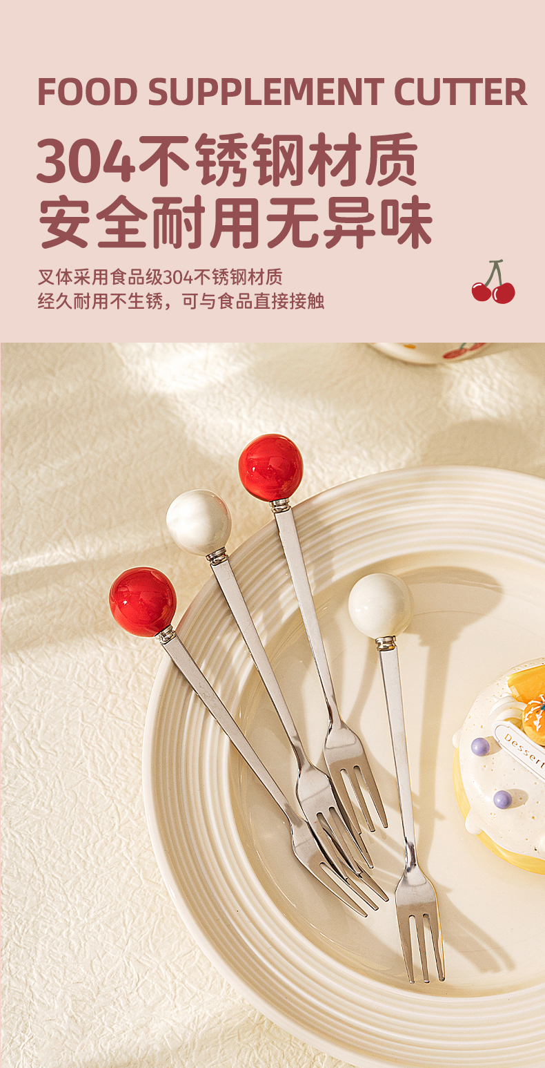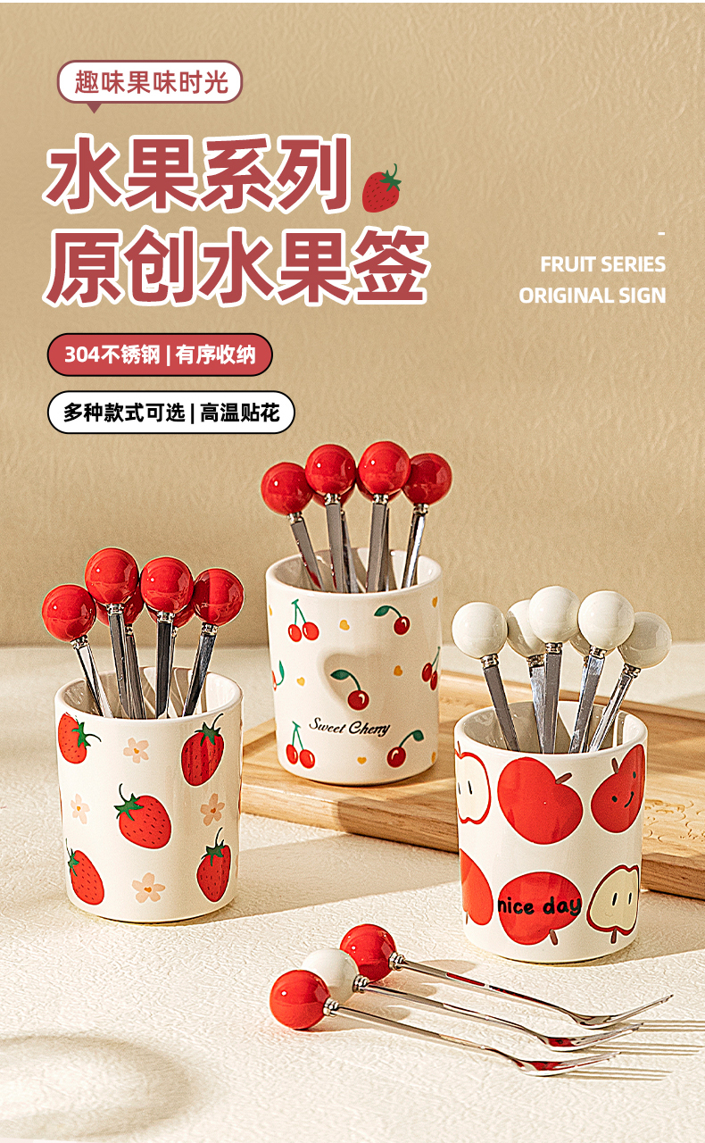 摩登主妇樱桃水果叉子不锈钢水果签收纳罐高级感餐具小叉子蛋糕叉