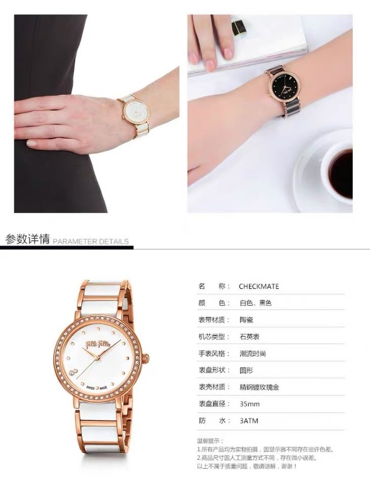 芙丽芙丽/Folli Follie简约轻奢圆表盘陶瓷瑞士制造女手表腕表