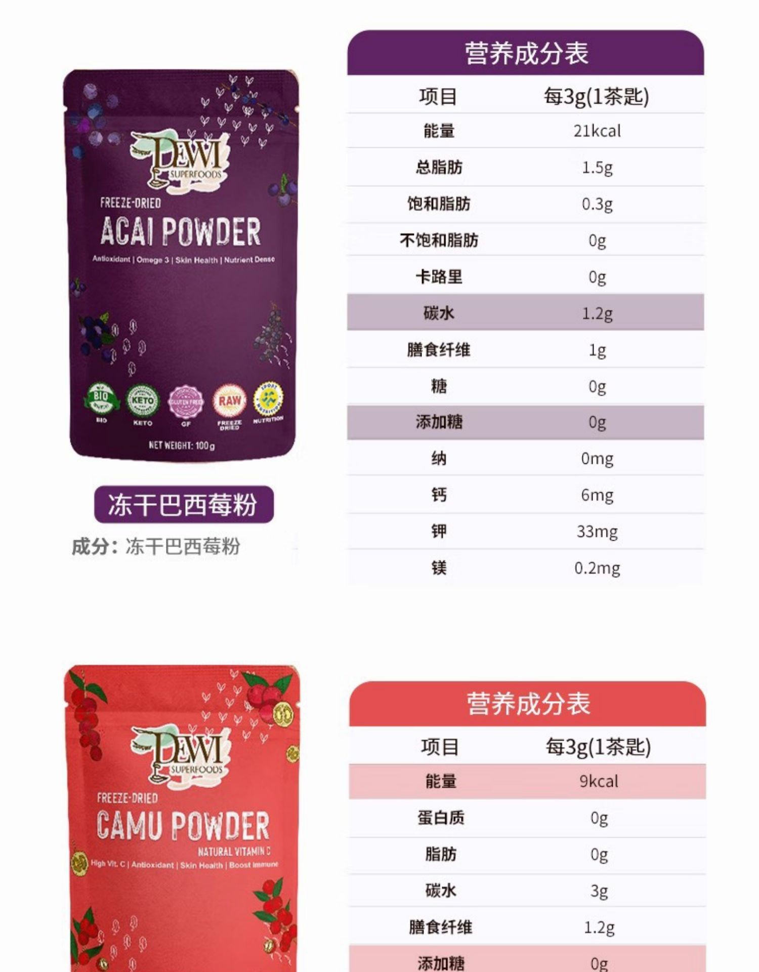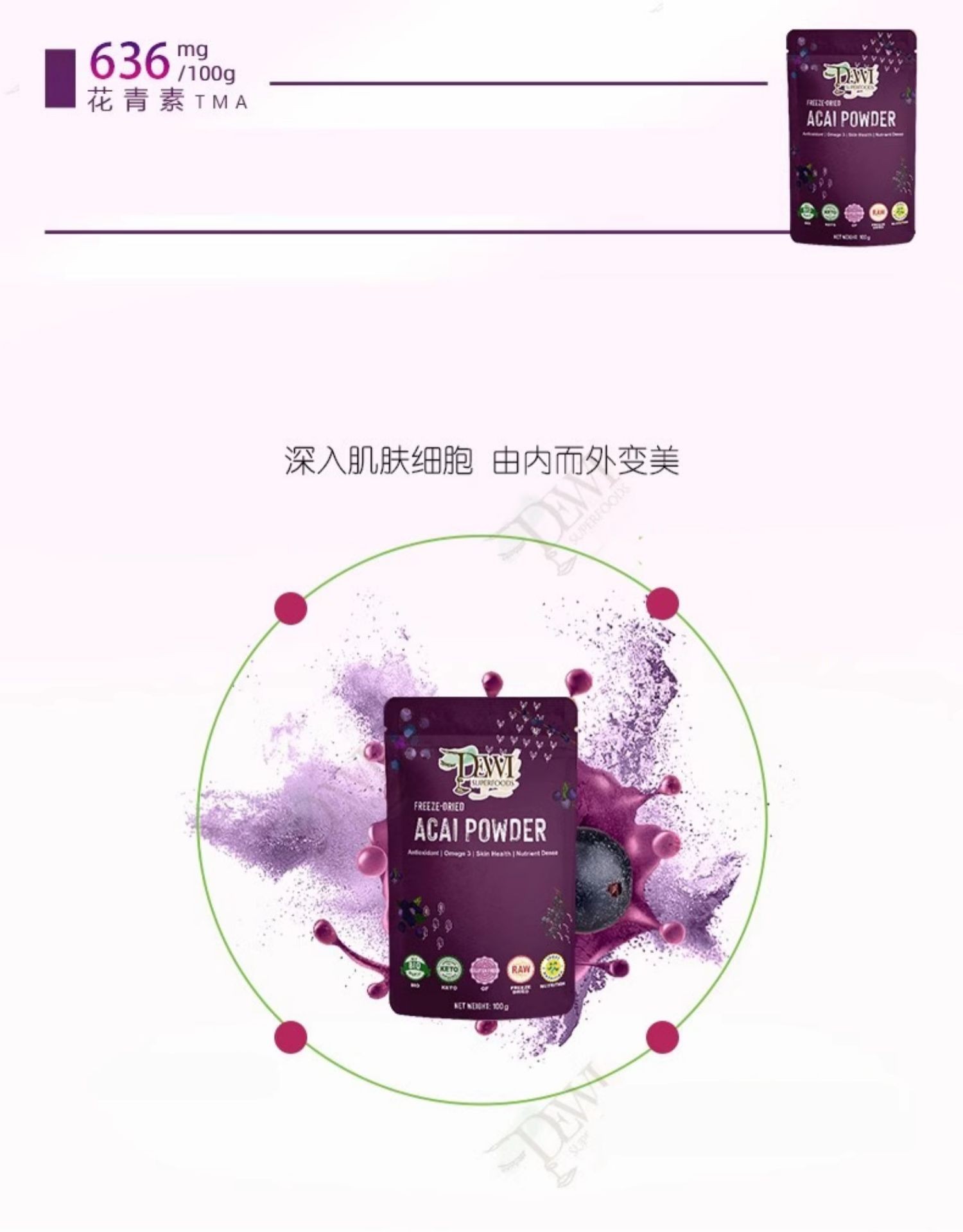 Dewi Superfoods黛维巴西莓冻干粉花青素酸奶代餐紫黑进口Acai