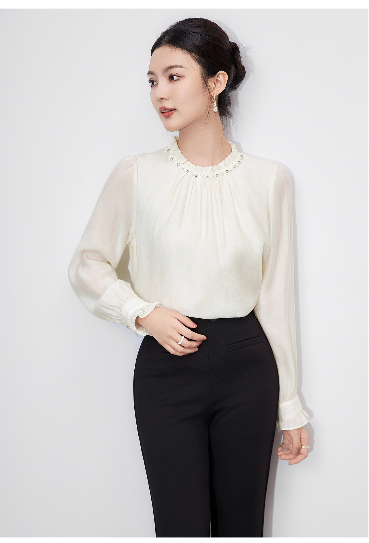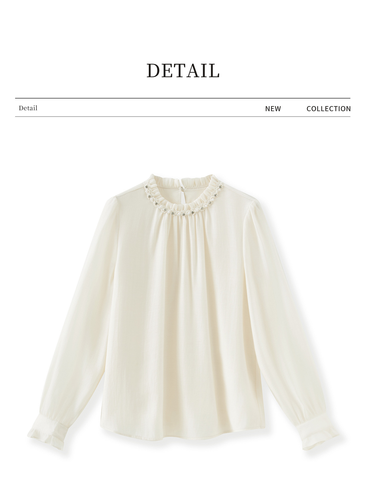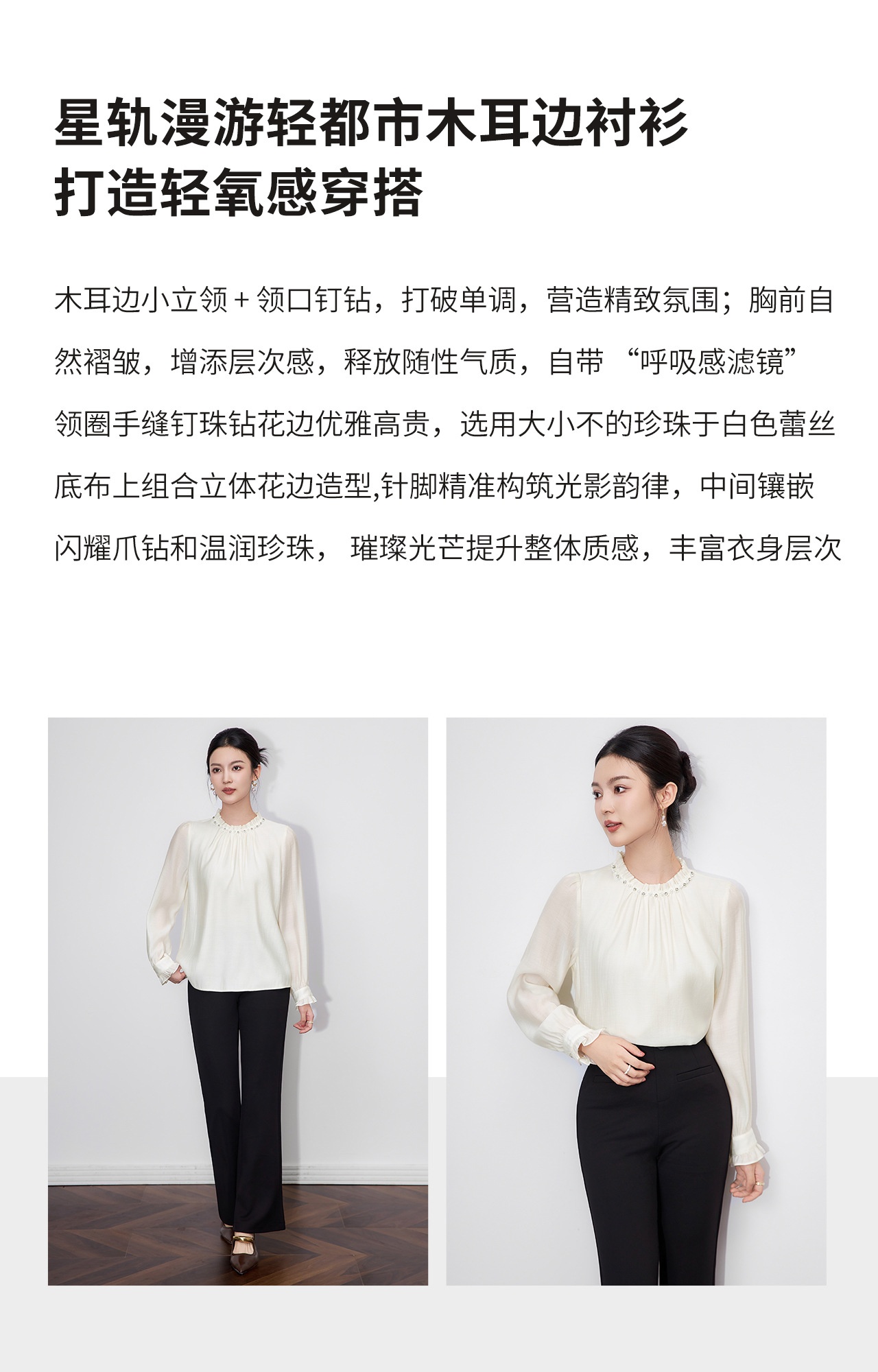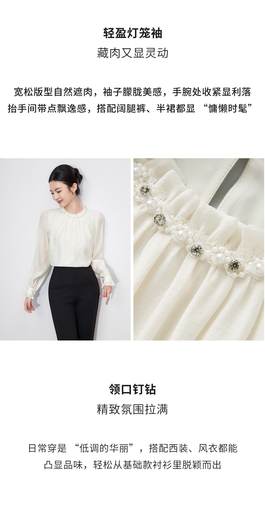 「高货wl」全新升级【铂金会员247/天猫329/差价82】(95102)洛诗琳法式重工钉珠衬衫2025秋季木耳边气质雪纺上衣女