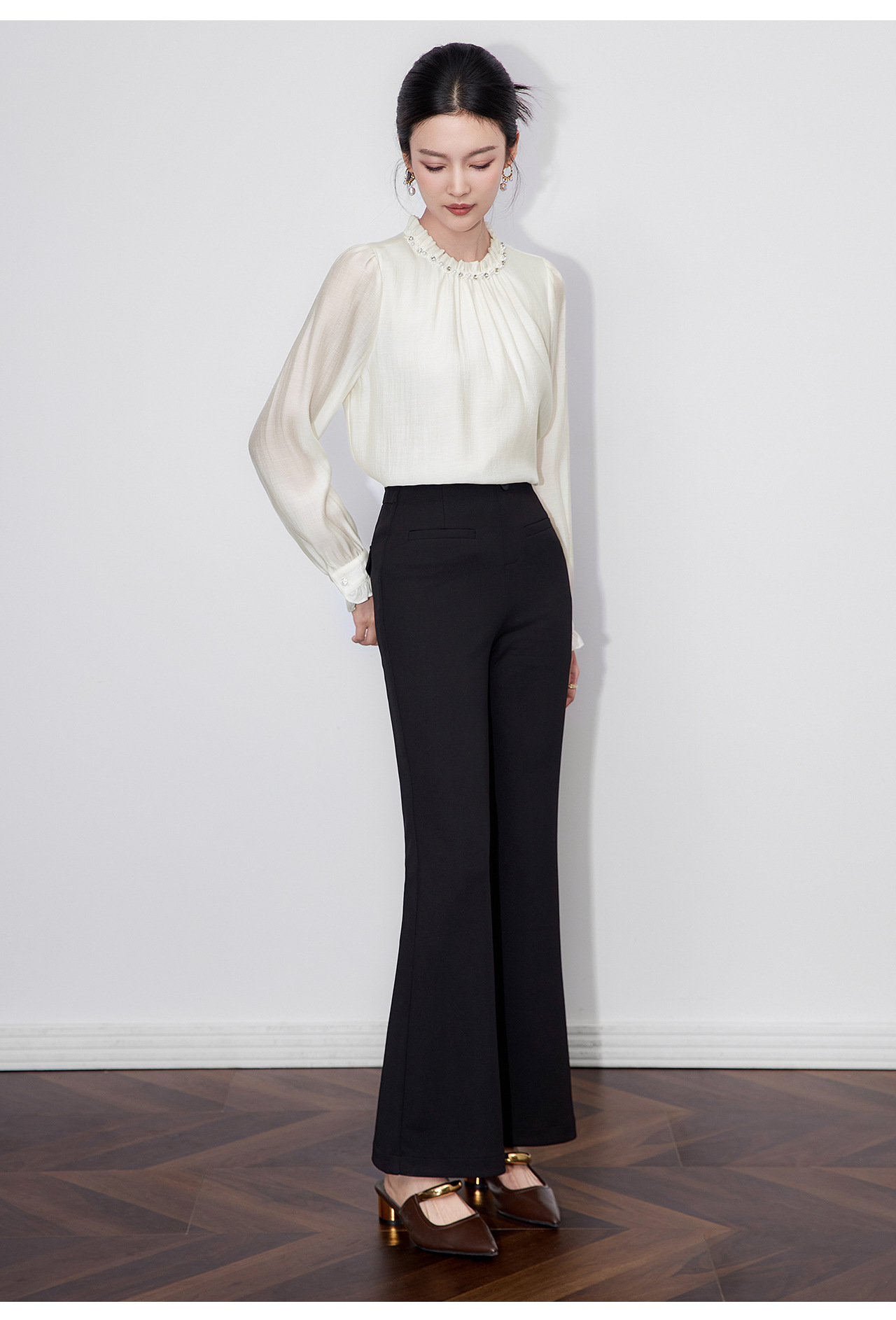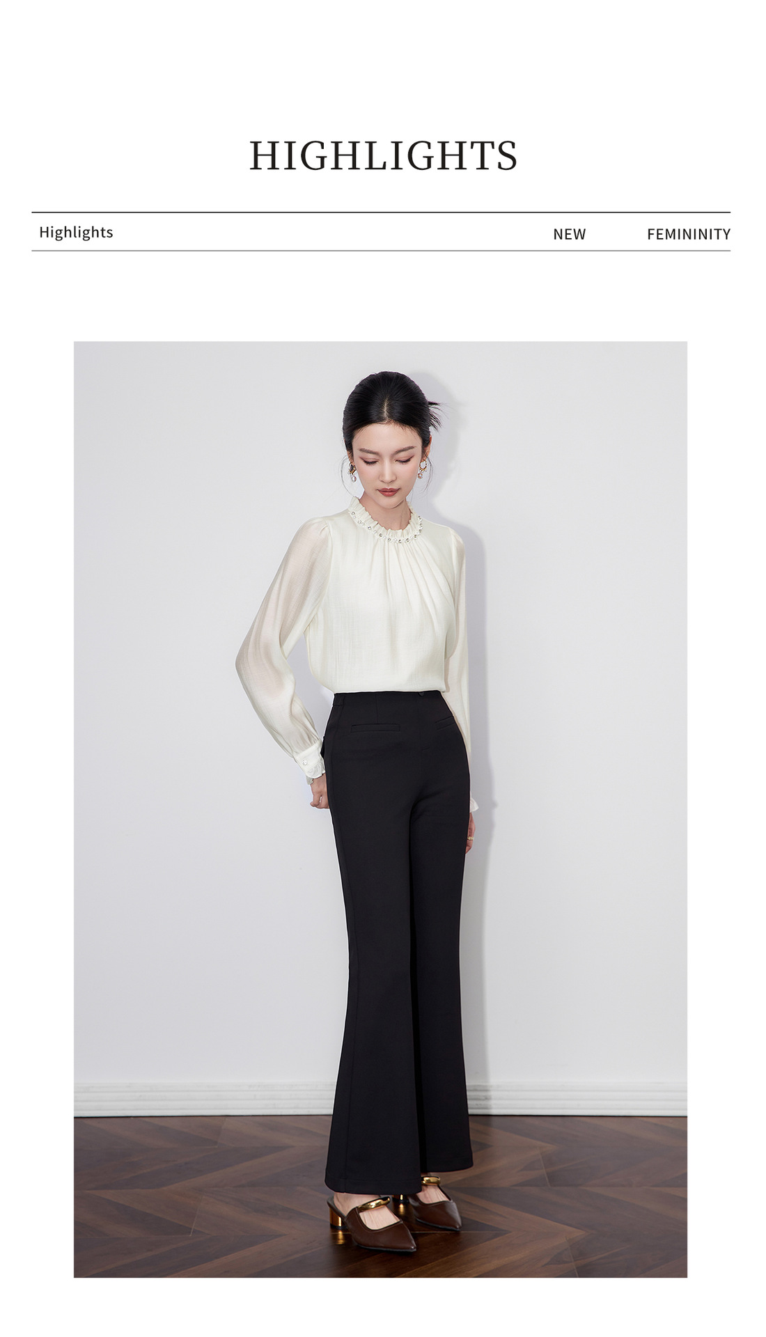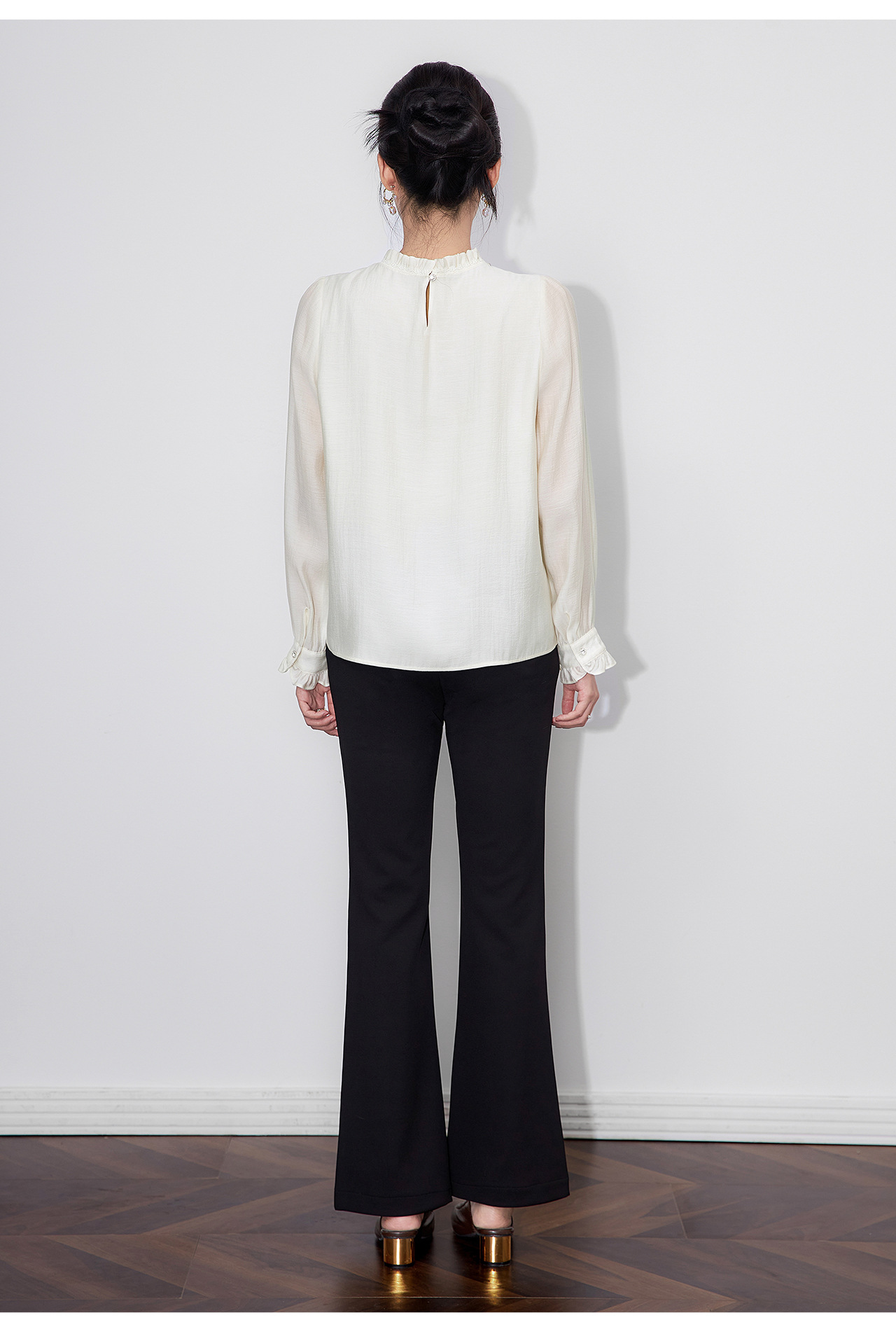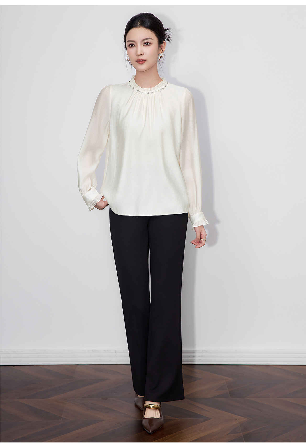 「高货wl」全新升级【铂金会员247/天猫329/差价82】(95102)洛诗琳法式重工钉珠衬衫2025秋季木耳边气质雪纺上衣女