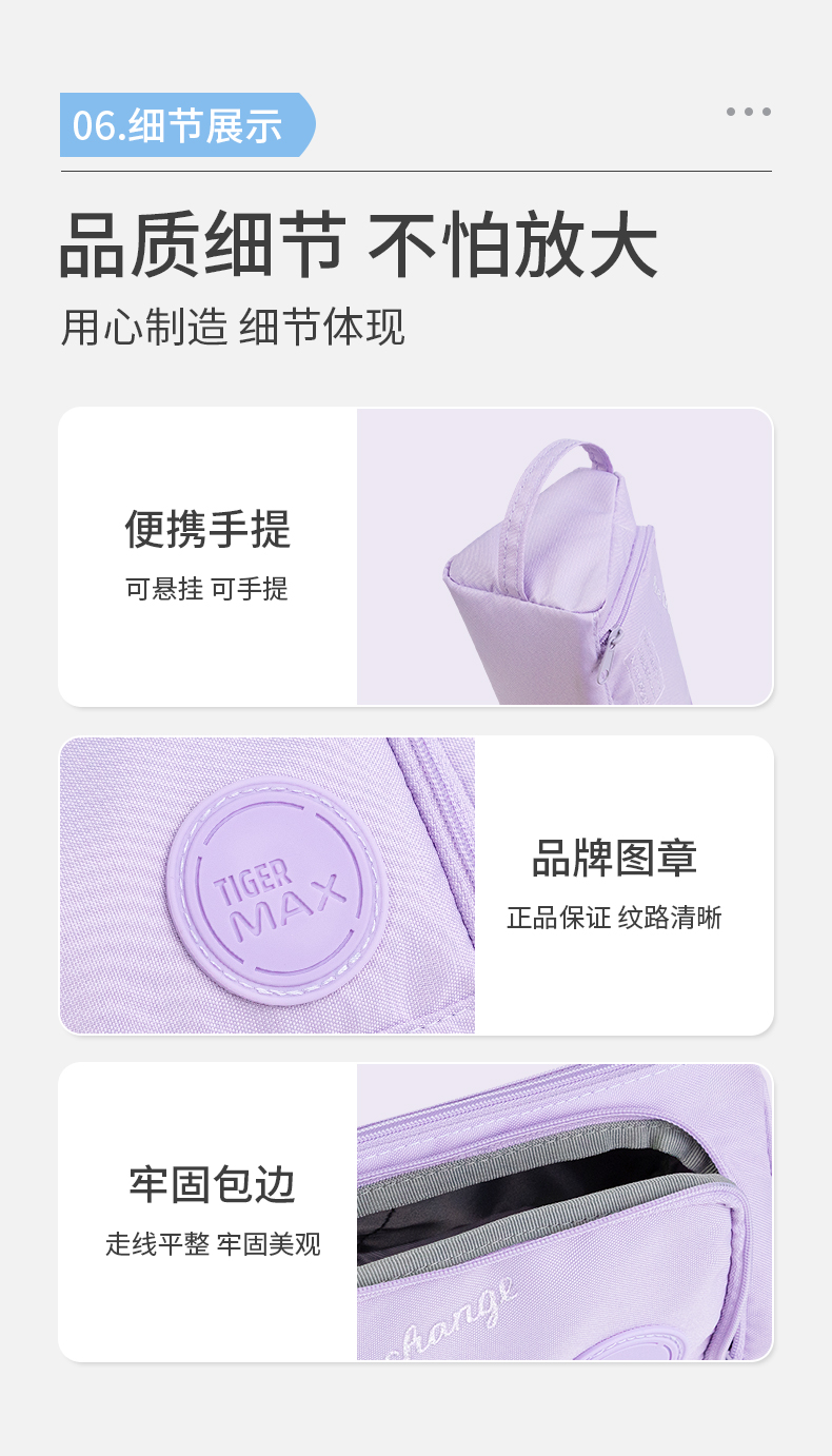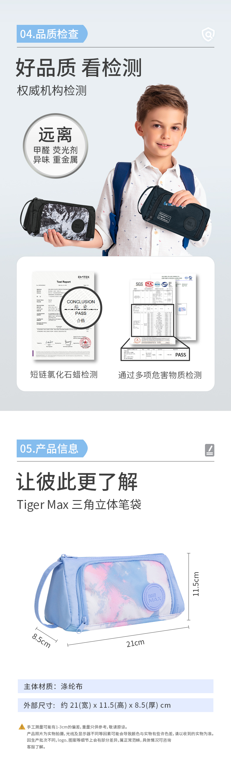 tigerfamily虎米 小学生 Max 三角立体拉链笔袋多功能大容量男女可爱简约儿童笔袋