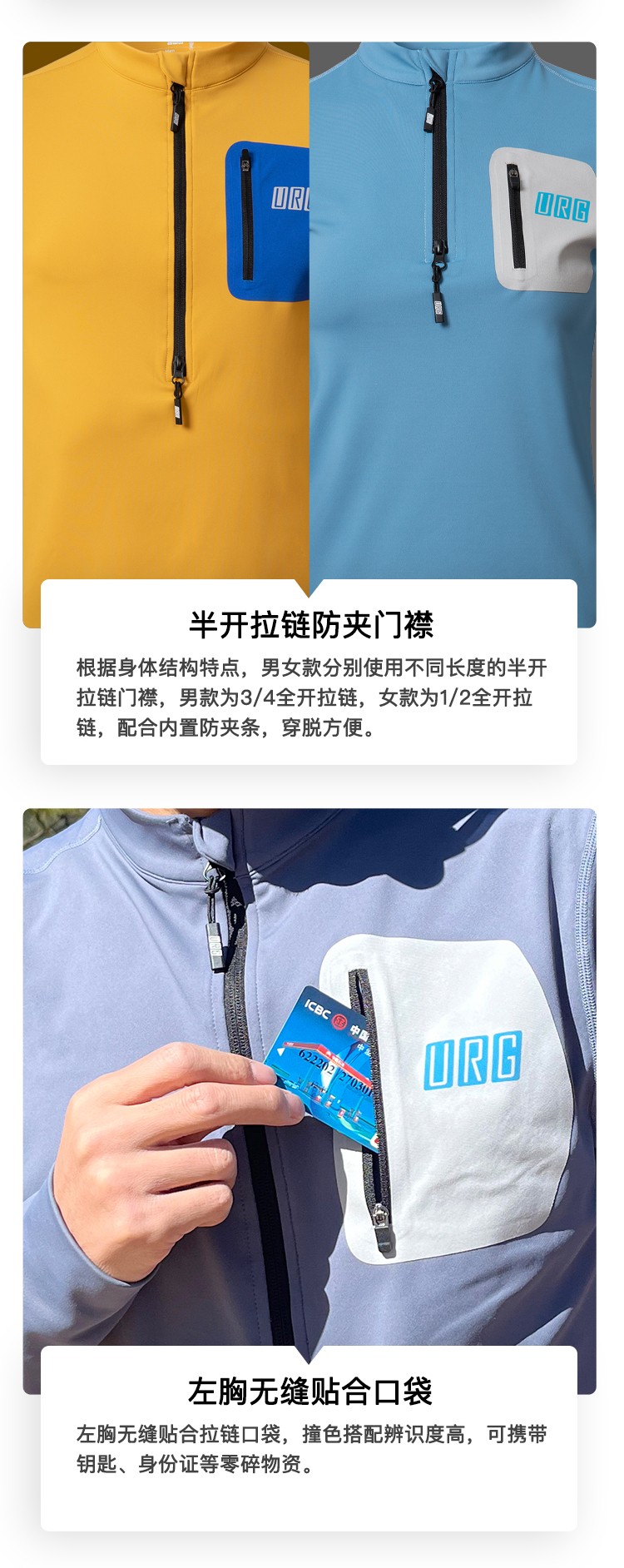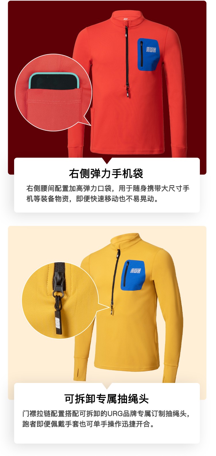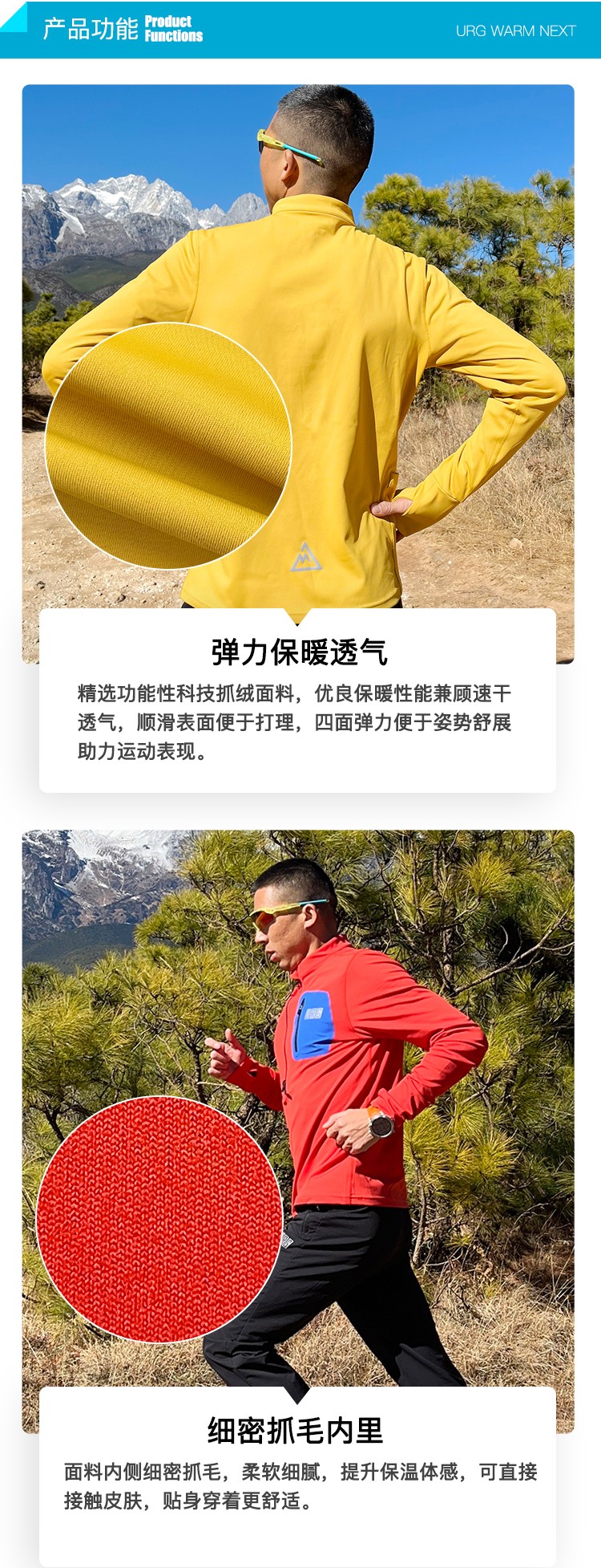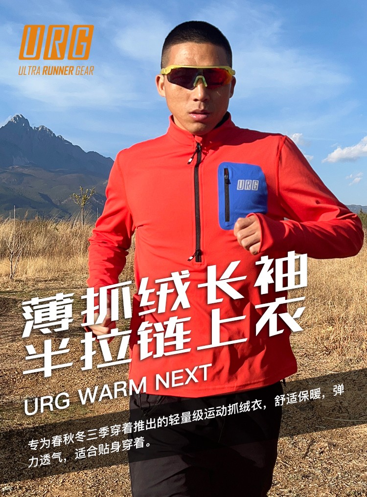 URG薄抓绒长袖半拉链上衣 Warm Next男女款春秋季跑步运动保暖舒适弹力透气户外越野装备