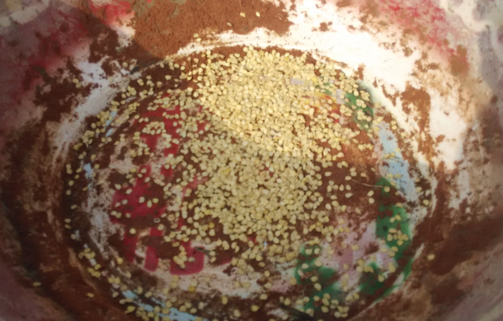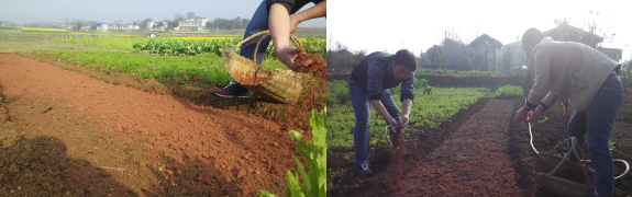 2月的雨水节气,开始育辣椒苗了,辣椒籽比较小,先用这样的红沙土跟种子一起混匀,这样在撒播种子的时候可以更均匀。红沙土是之前用来储存小黄姜的,其特有的均匀、细沙特性正好可以用来拌种。这样的红沙在旁边的山坡中几乎到处都是,可以用来拌种,可以用来储存生姜,可以用来改善当地粘土的物理结构,还可以用来补充地里的矿物质元素。