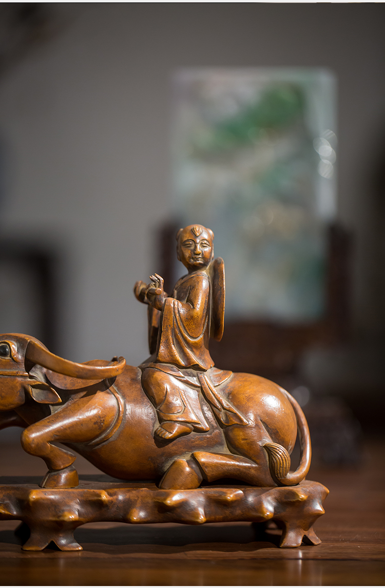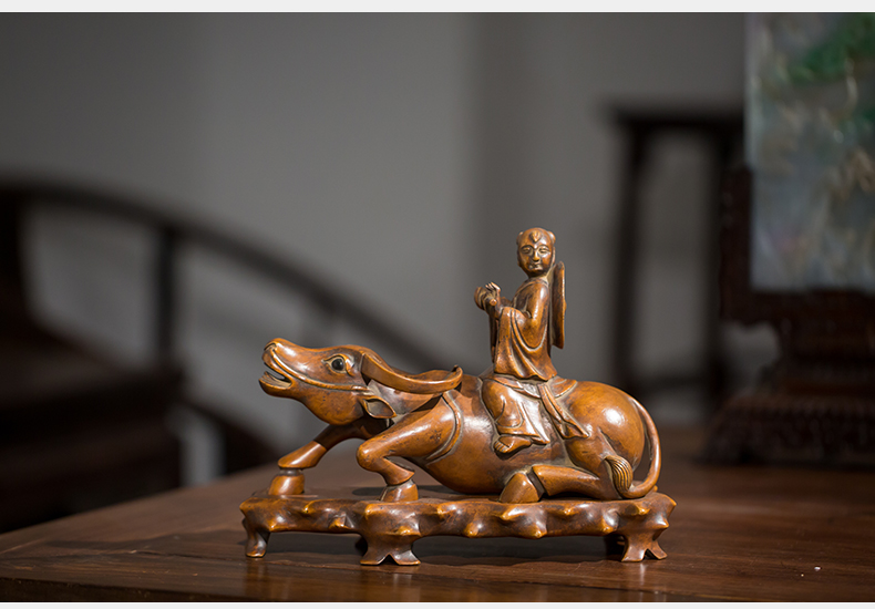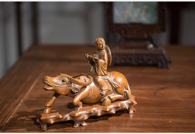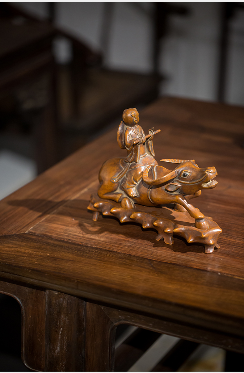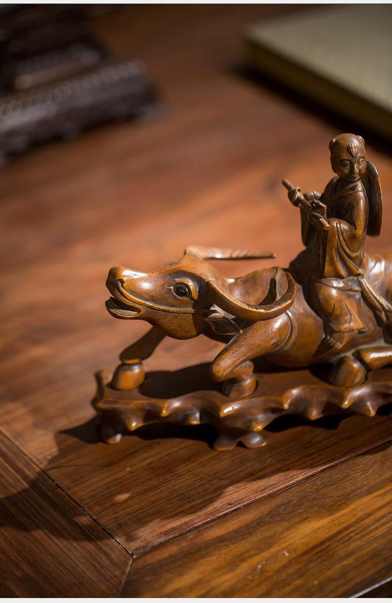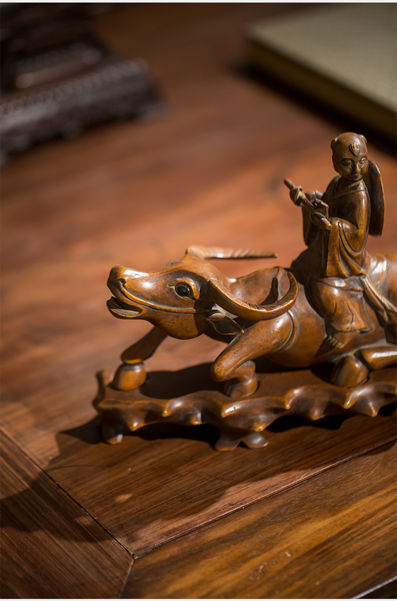 清代 黄杨木雕牧牛童子摆件