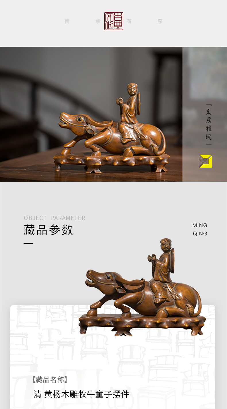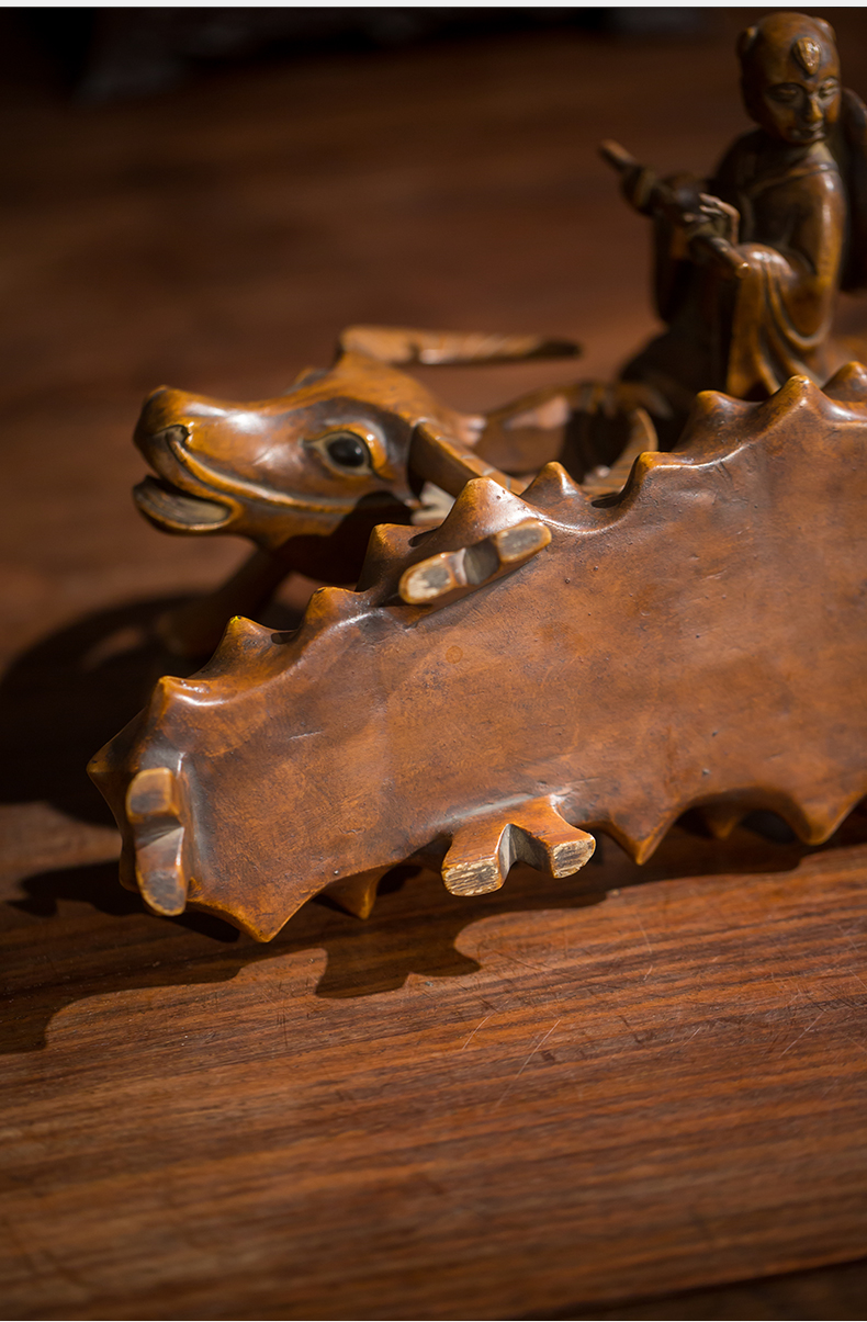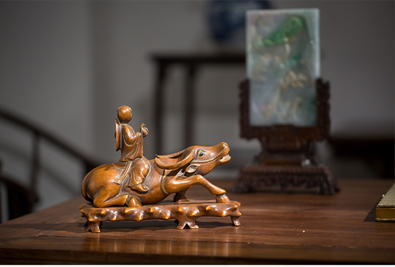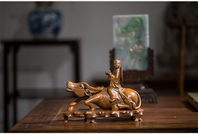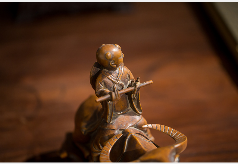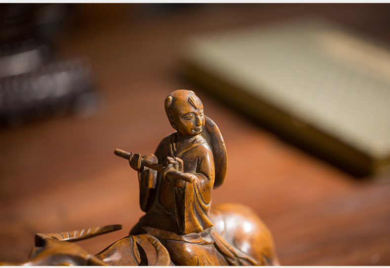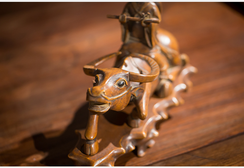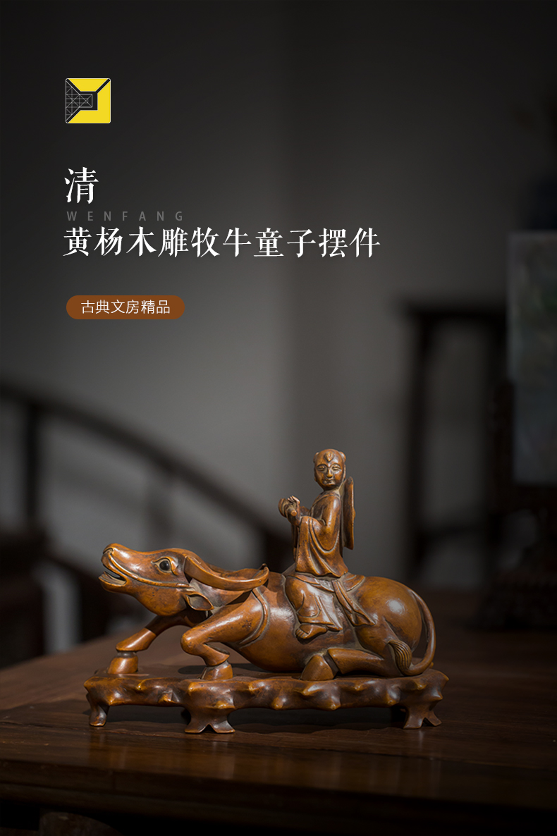 清代 黄杨木雕牧牛童子摆件