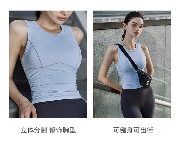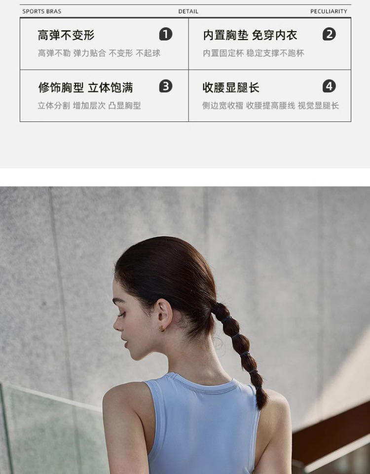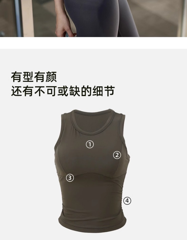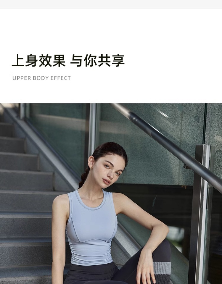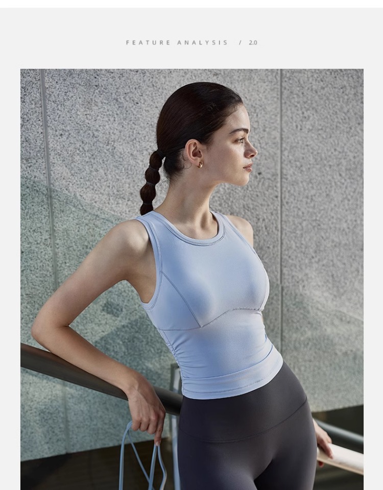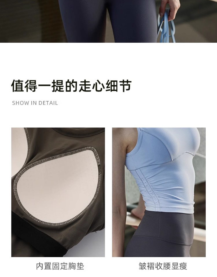 跃牌【安琪拉系列】新款健身运动背心固定胸垫弹力抽褶修身瑜伽背心速干运动文胸BX-5076