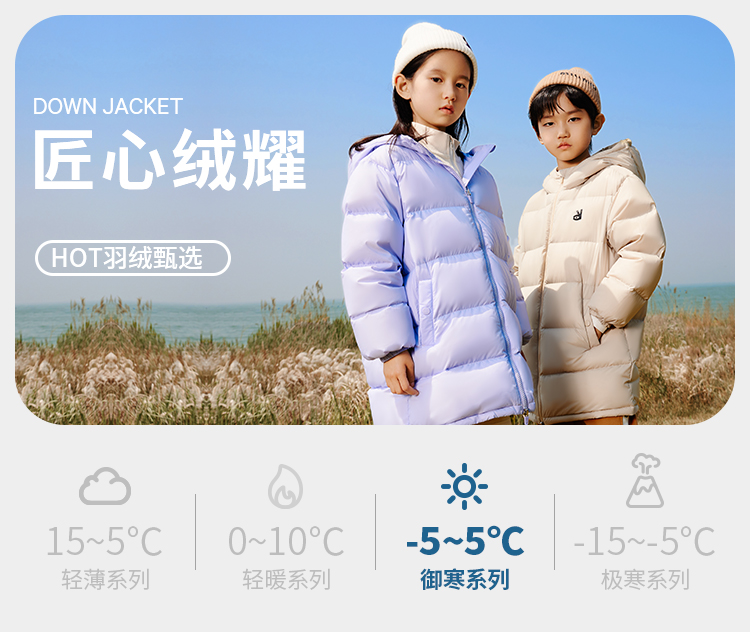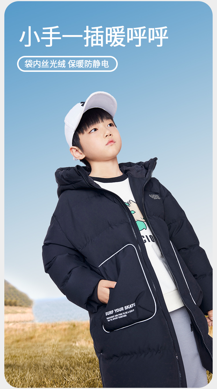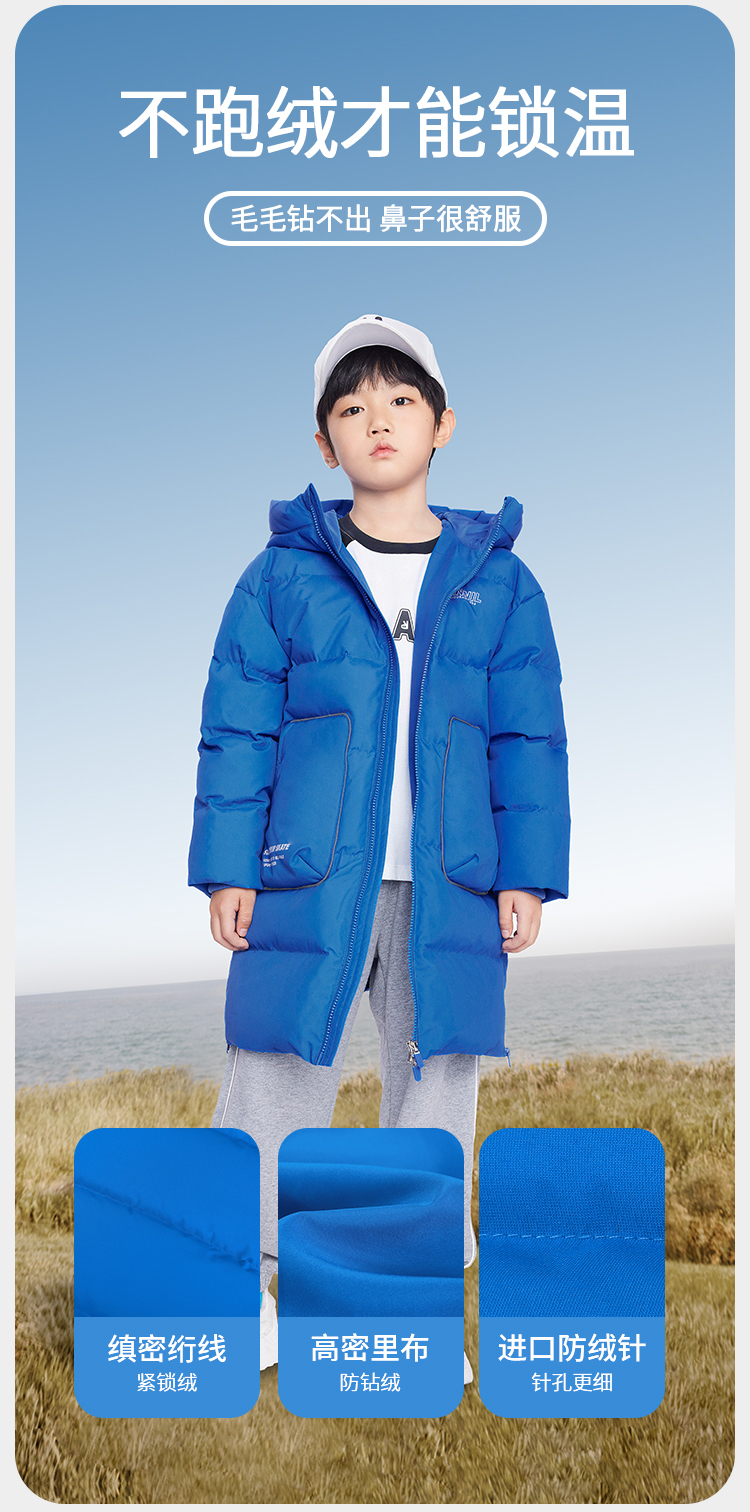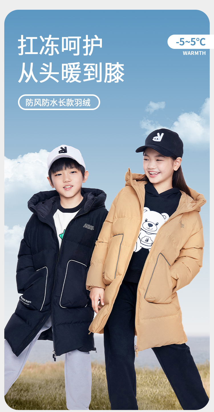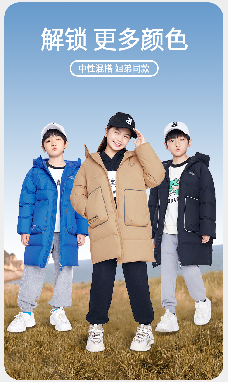 【御寒-5~5℃】【新年红】男女童防风长款羽绒服外套加厚优质鸭绒安奈儿童装EM345076