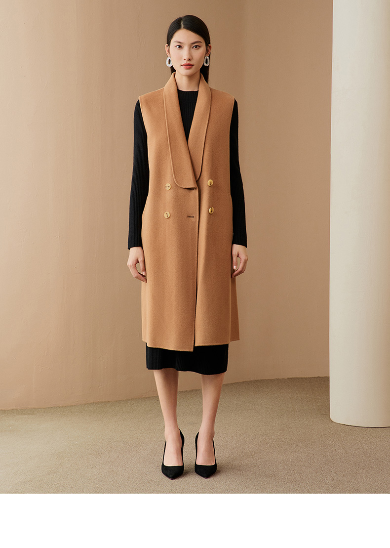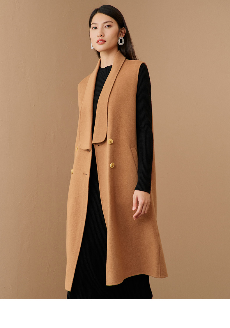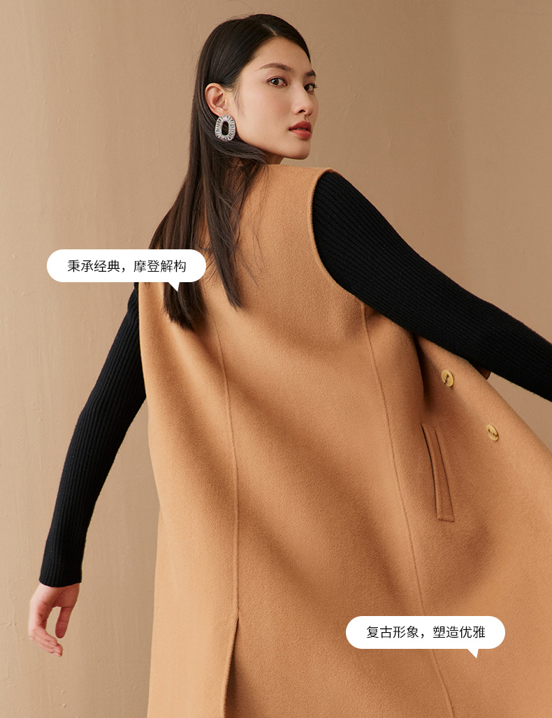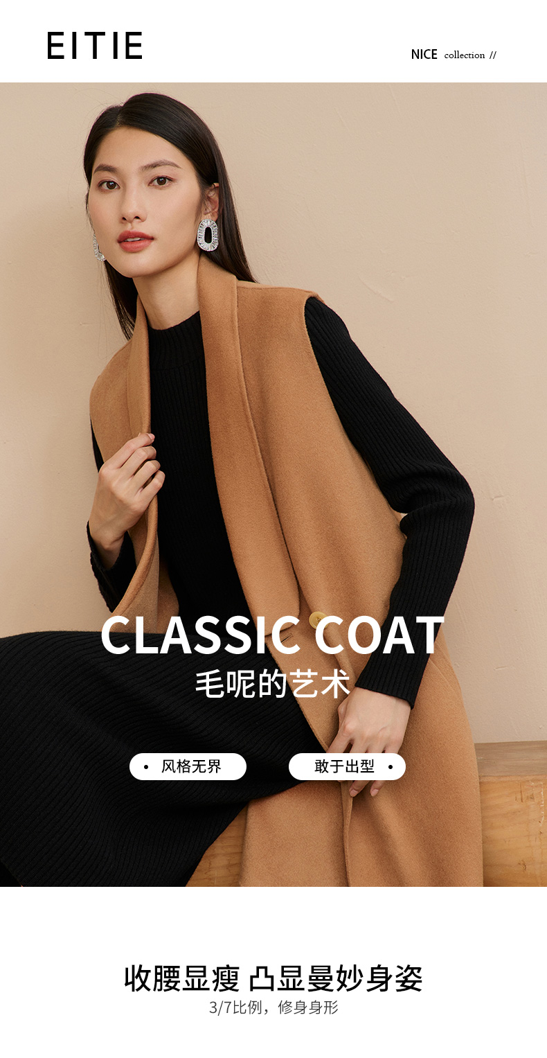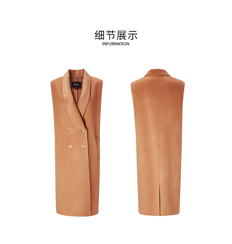 EITIE爱特爱冬季新款时尚气质纯色马甲大衣中长款外套女6814505
