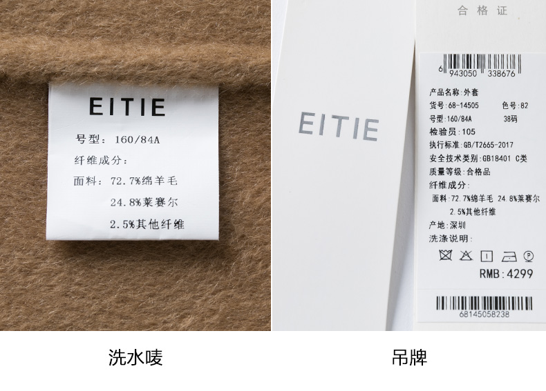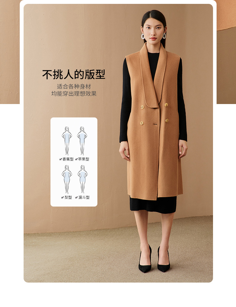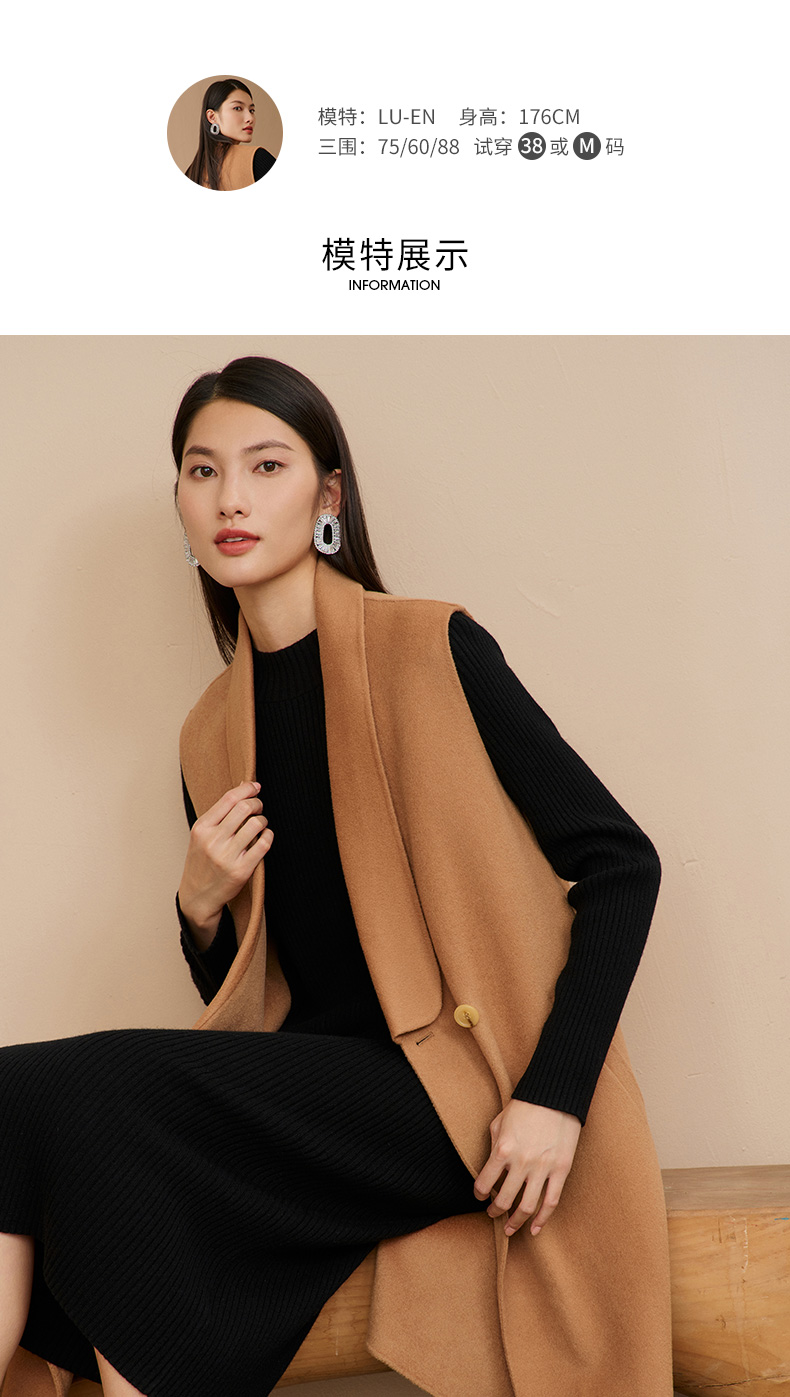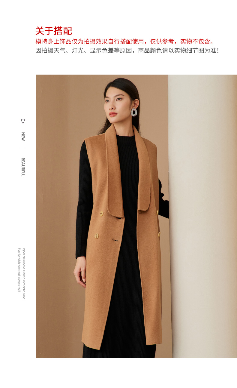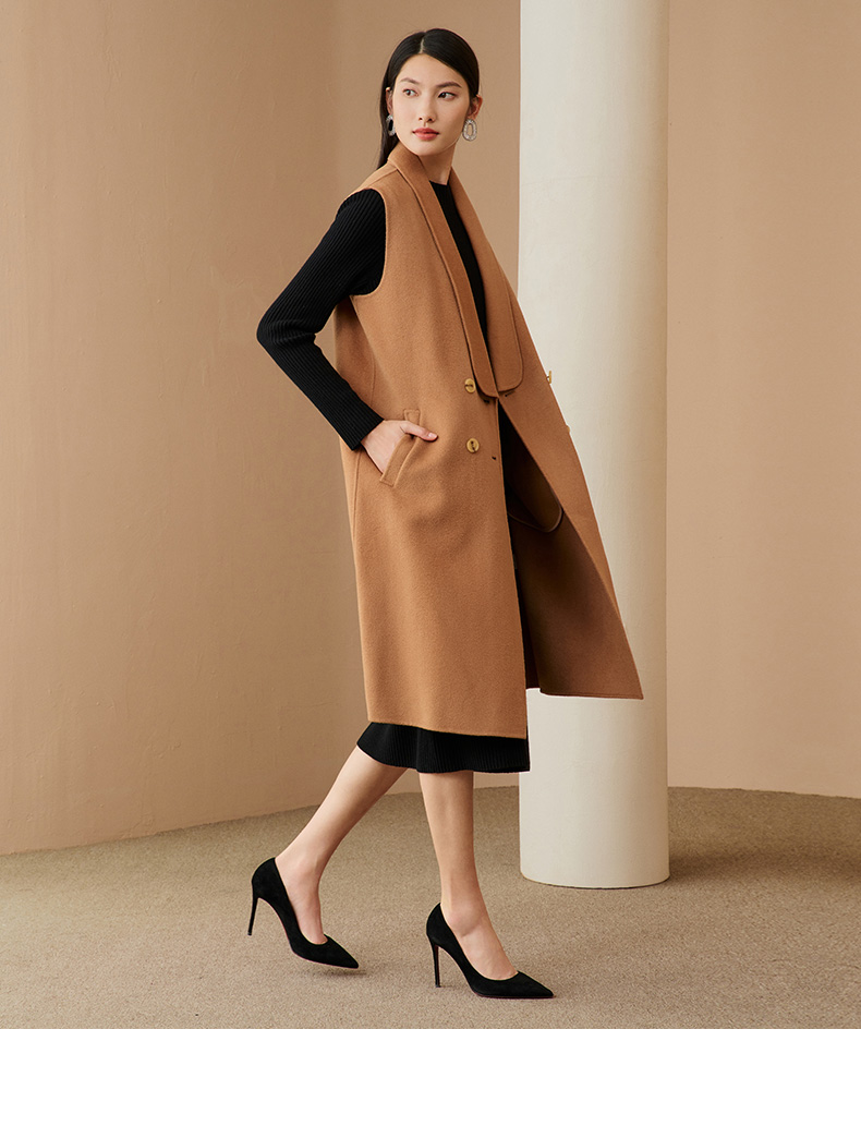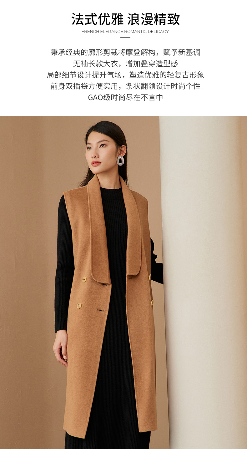 EITIE爱特爱冬季新款时尚气质纯色马甲大衣中长款外套女6814505