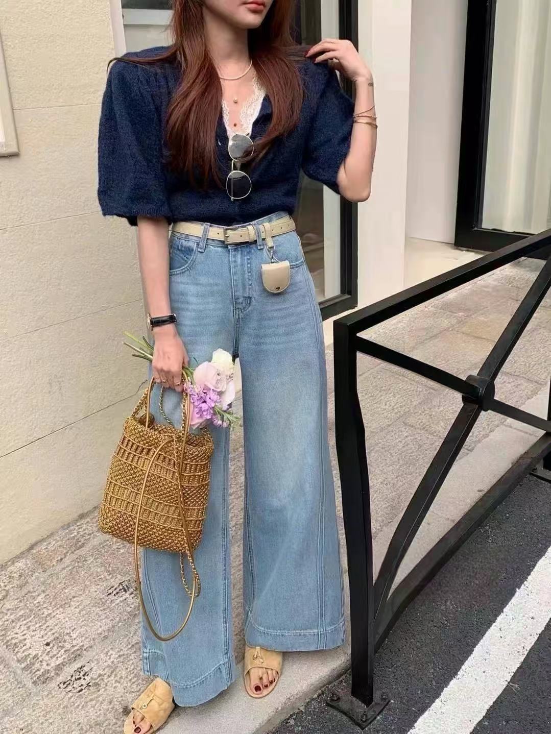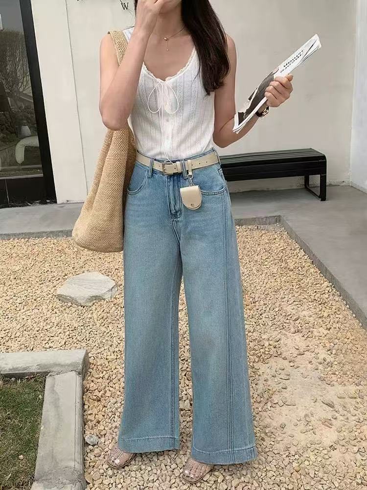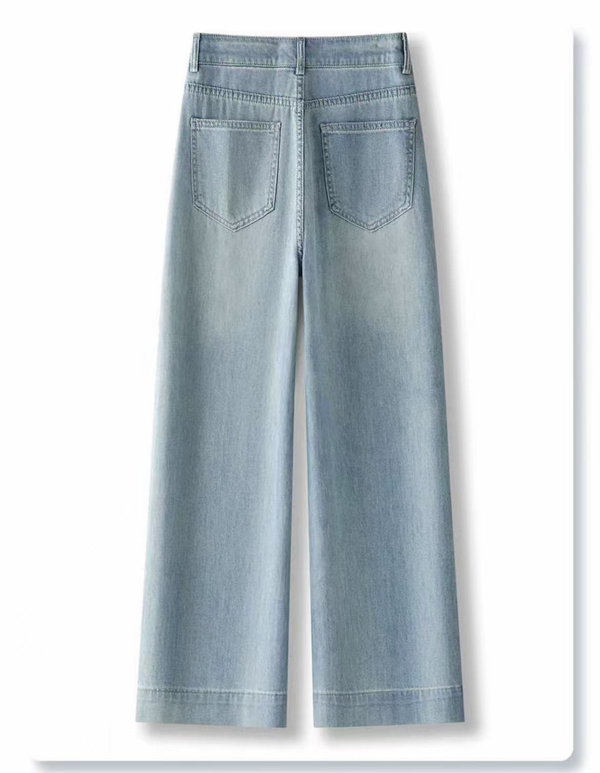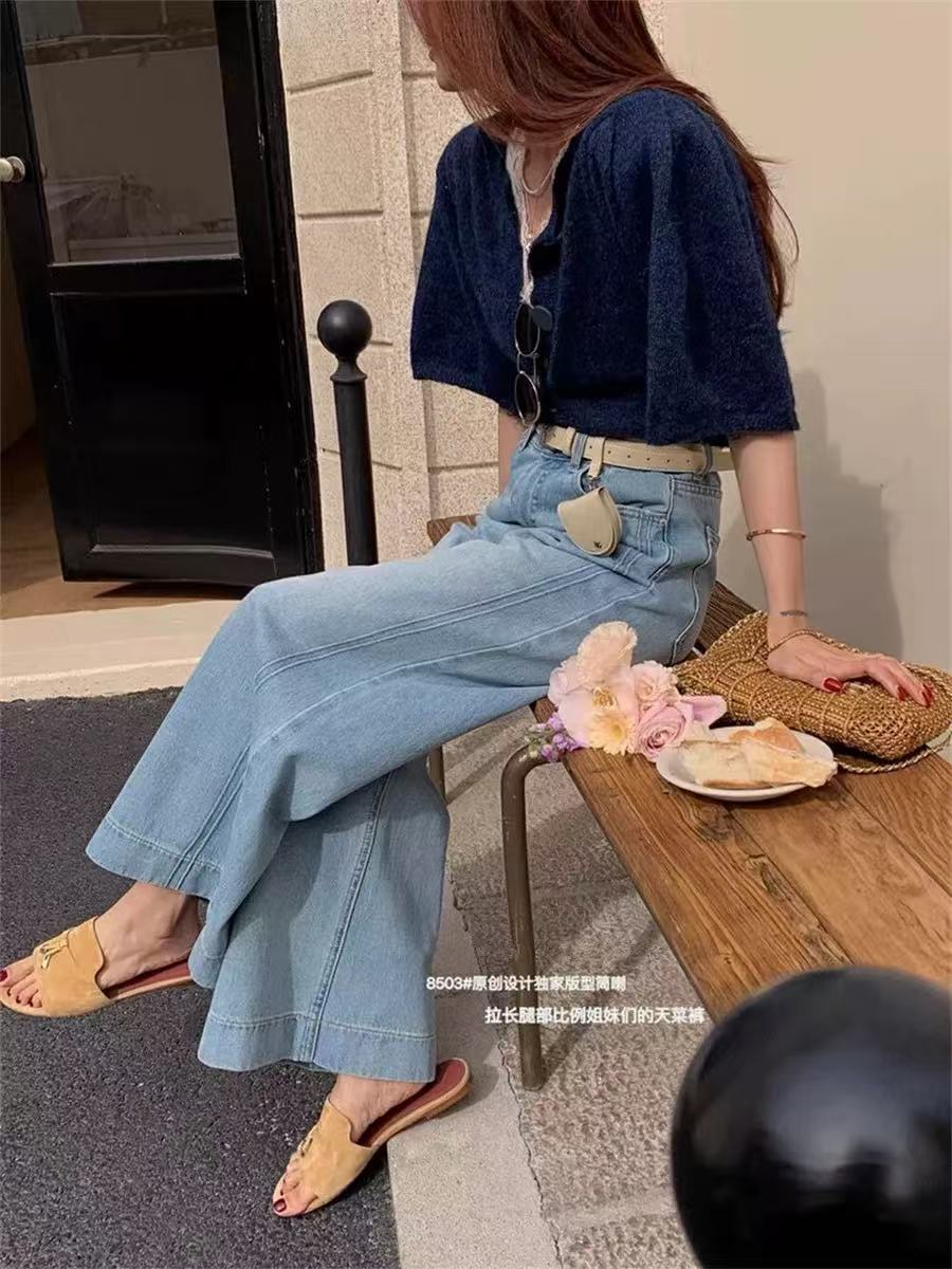 {牛仔裤2025}7086莱赛尔➕棉立体条直筒牛仔裤-喜出