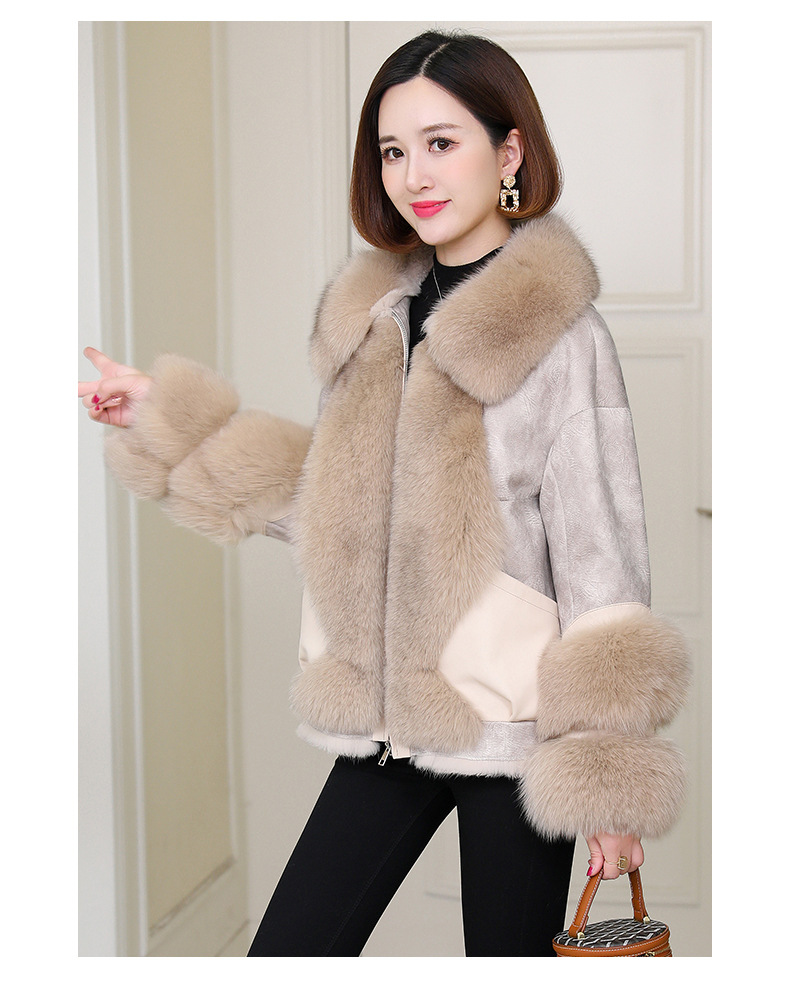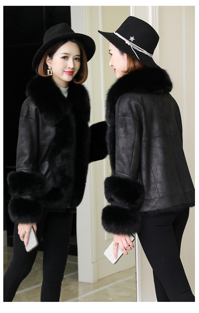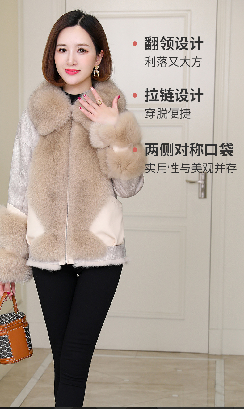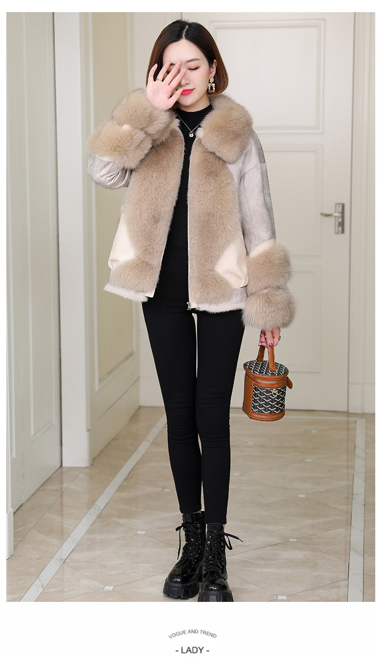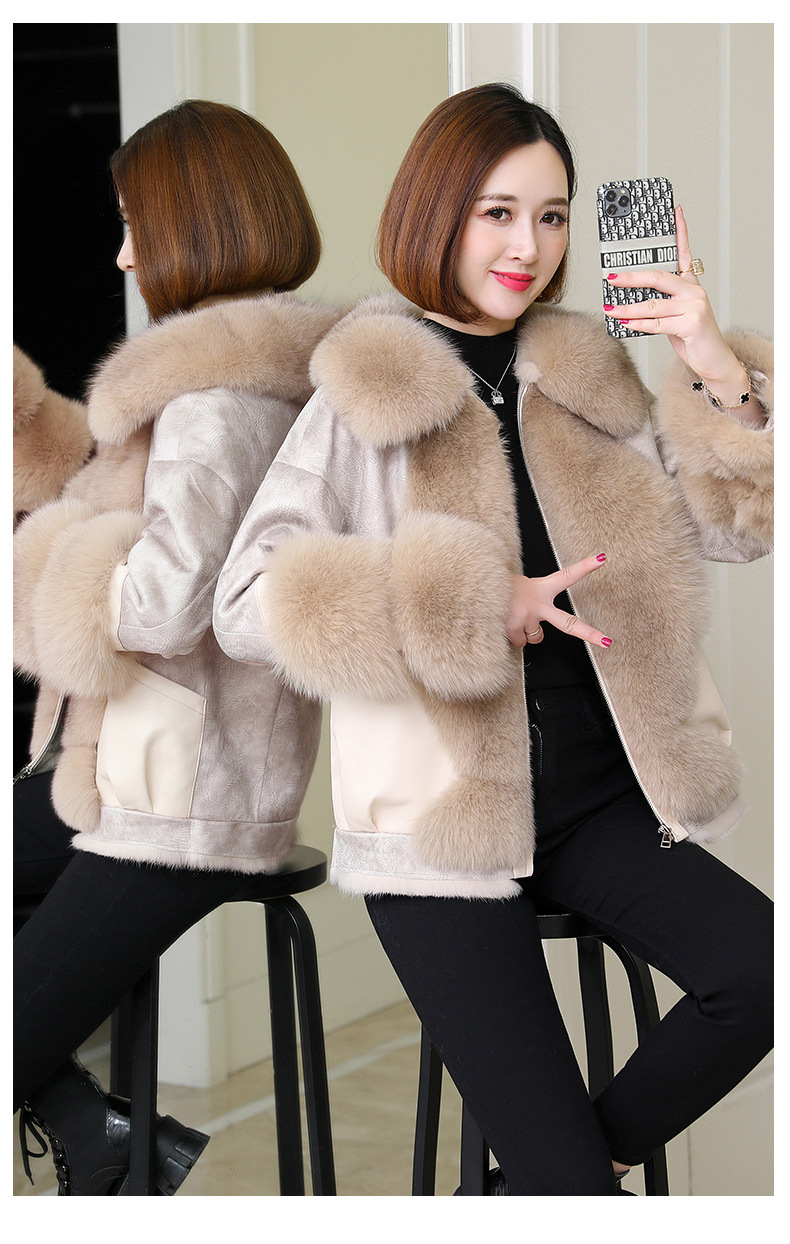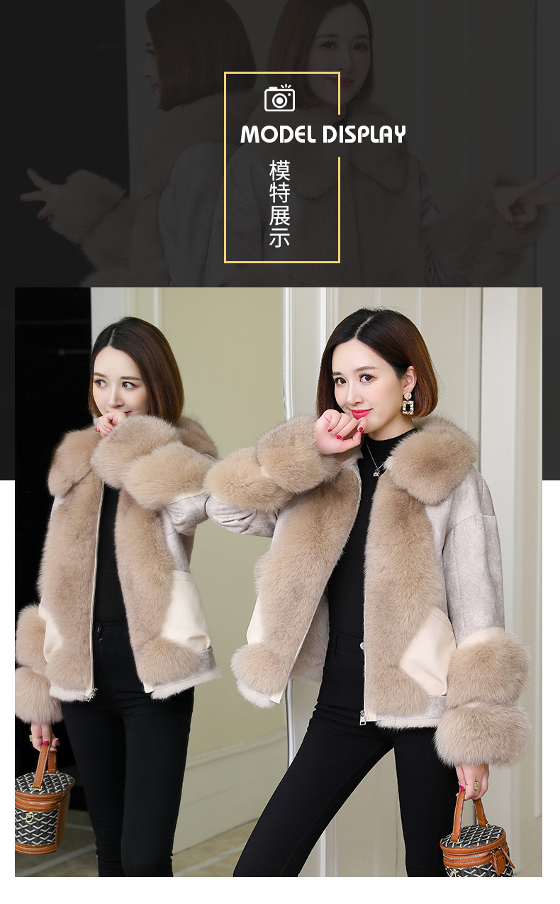 YFN-F2032冬季麂皮绒外套女韩版兔毛内胆皮草翻领狐狸毛领拼接皮草