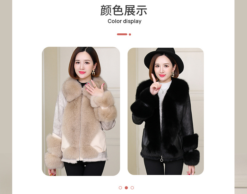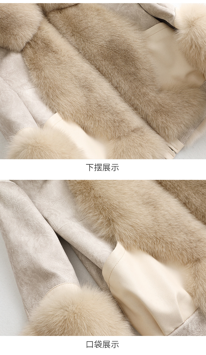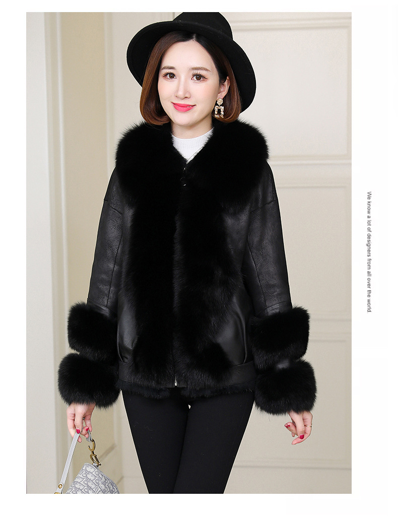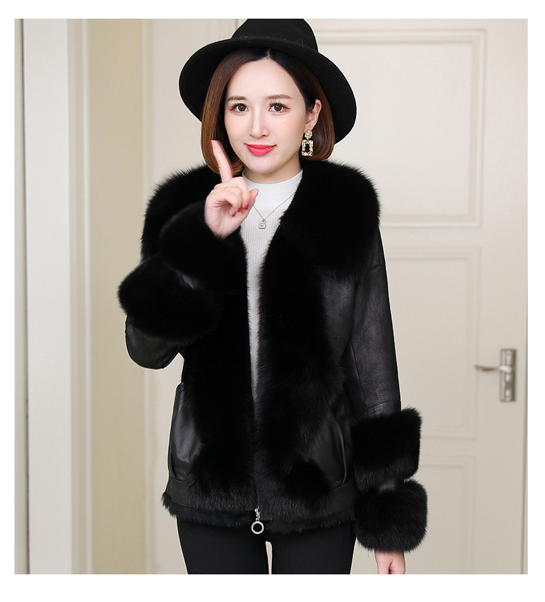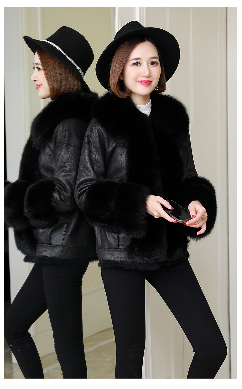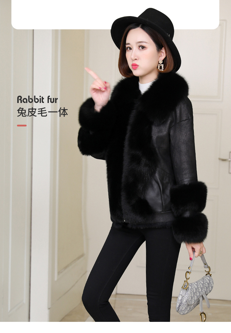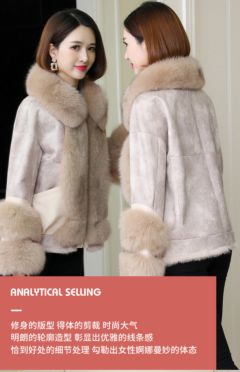 YFN-F2032冬季麂皮绒外套女韩版兔毛内胆皮草翻领狐狸毛领拼接皮草