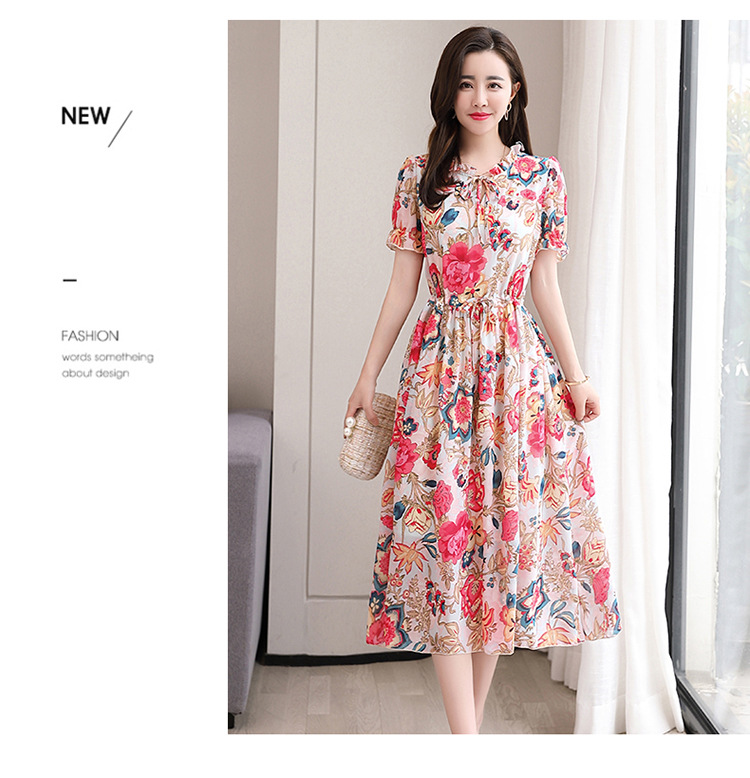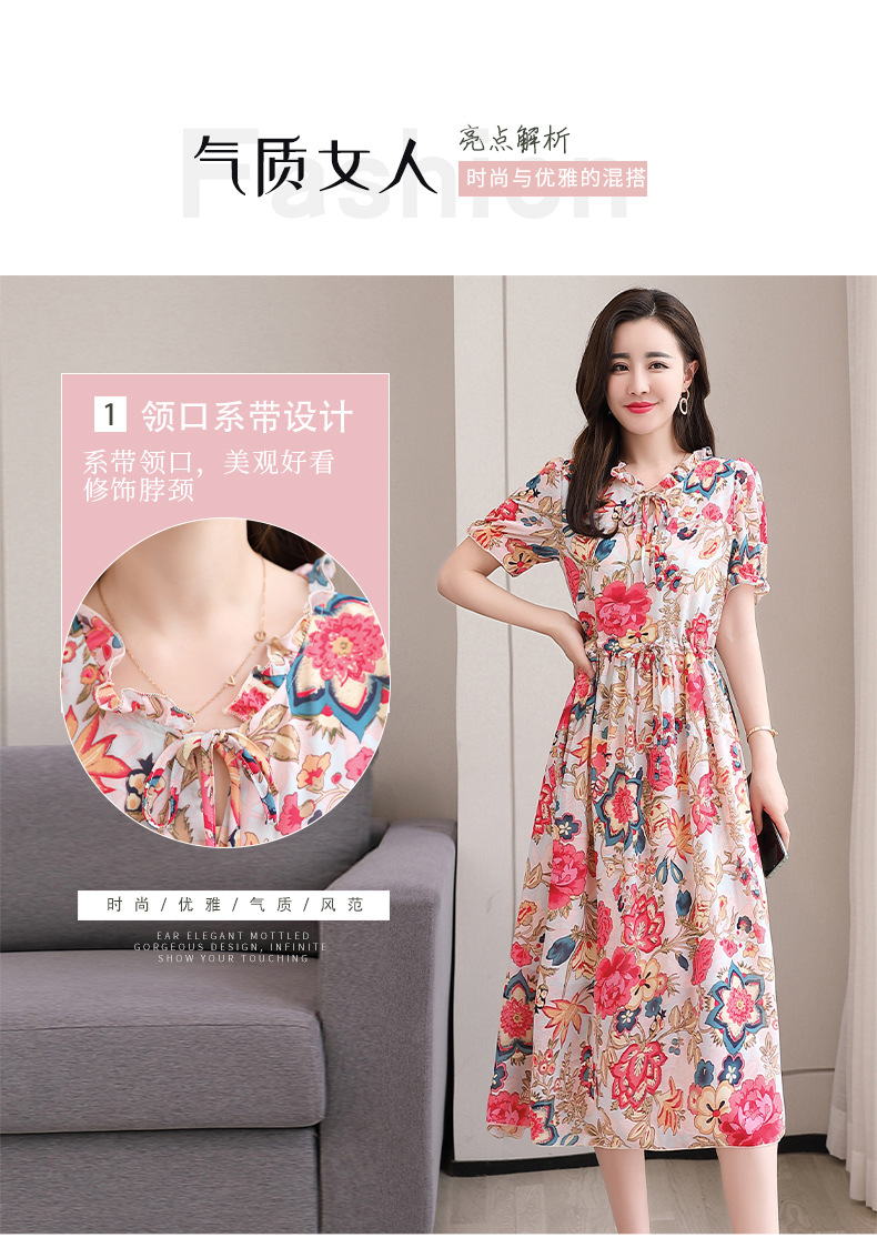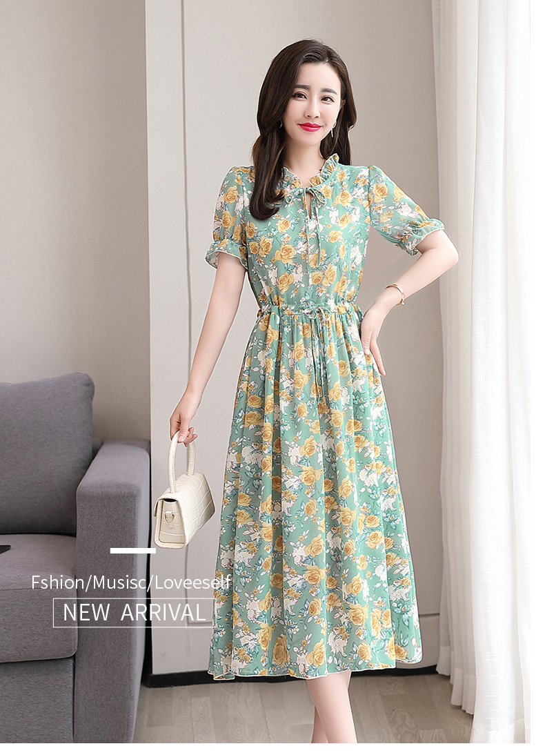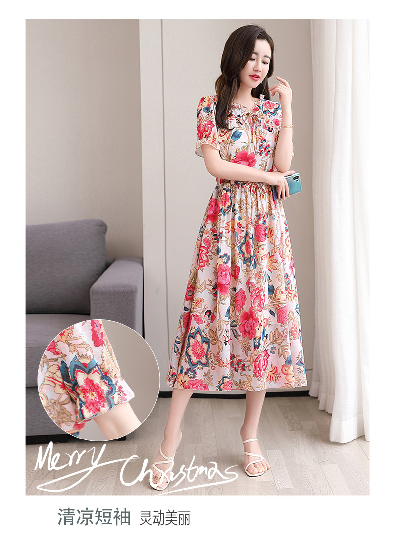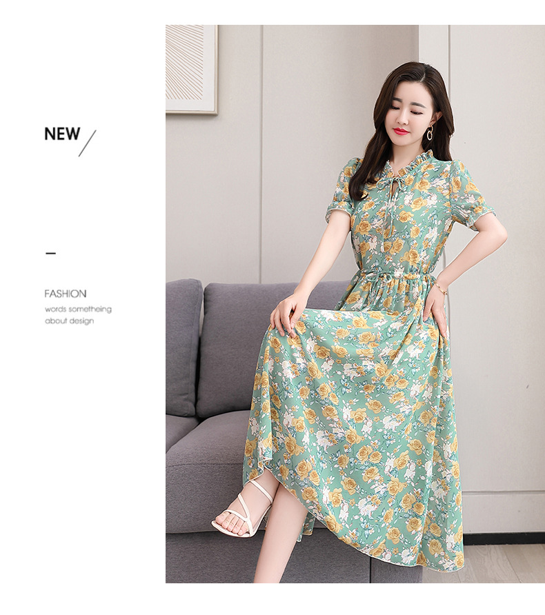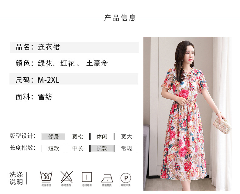 WZNH-WX33029夏季优雅气质女装雪纺V领A字裙连衣裙