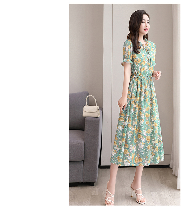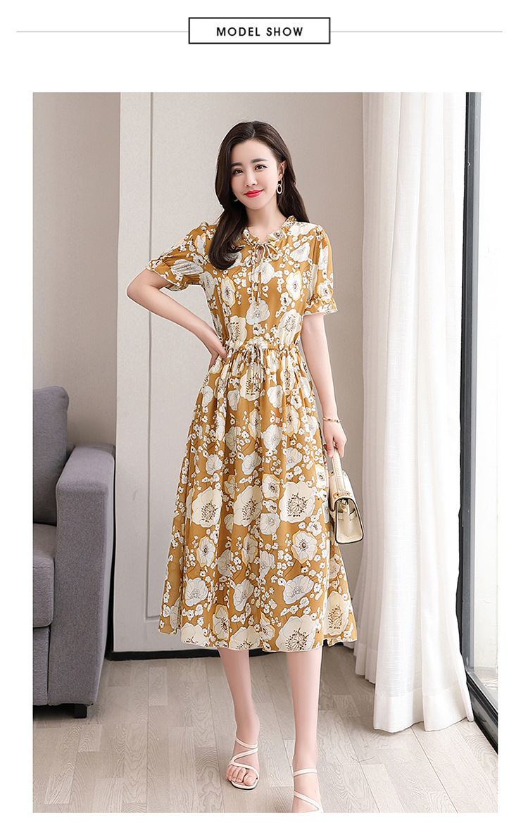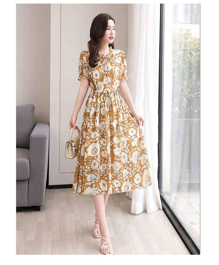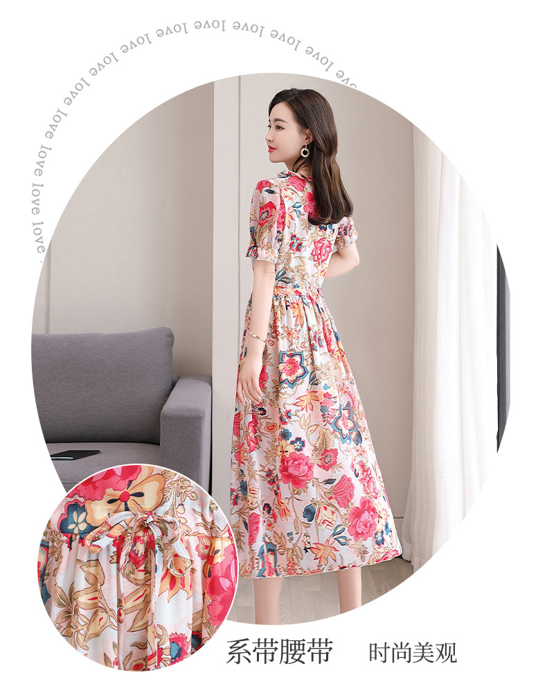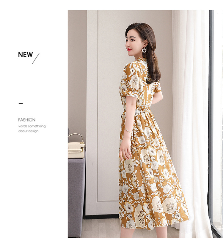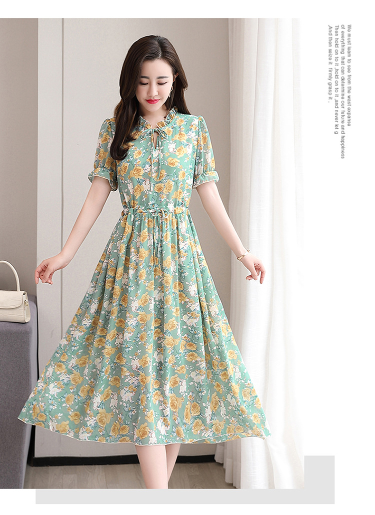 WZNH-WX33029夏季优雅气质女装雪纺V领A字裙连衣裙