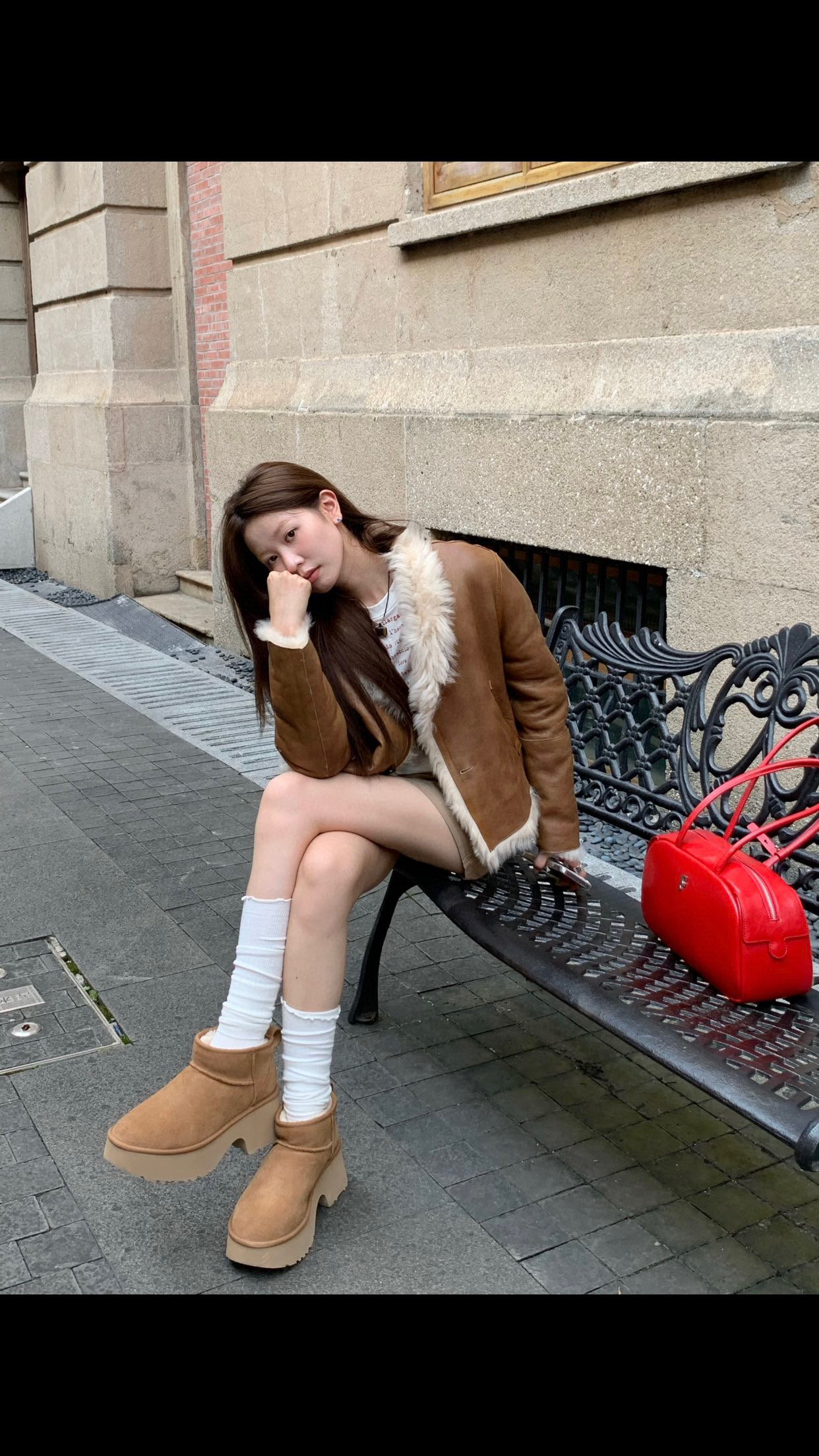 拉长腿部比例的厚底雪地靴!!足足7cm啊!439g的单靴克重👇🏻