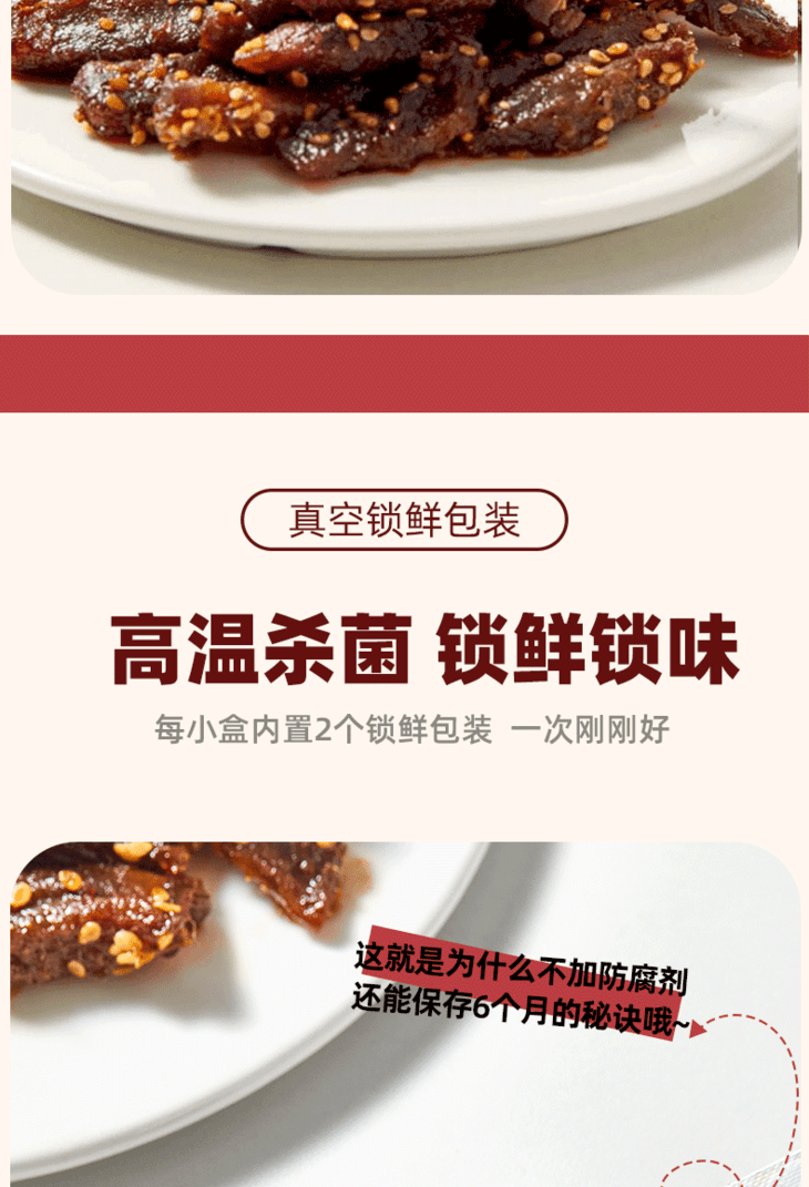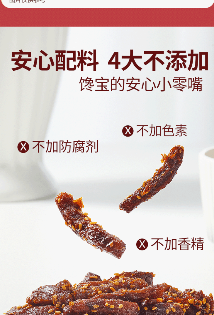 仅加入食用盐,天然香辛料等,真正的纯肉口感,全程杜绝添加人工色素、防腐剂等有害物质,拒绝科技与狠活!