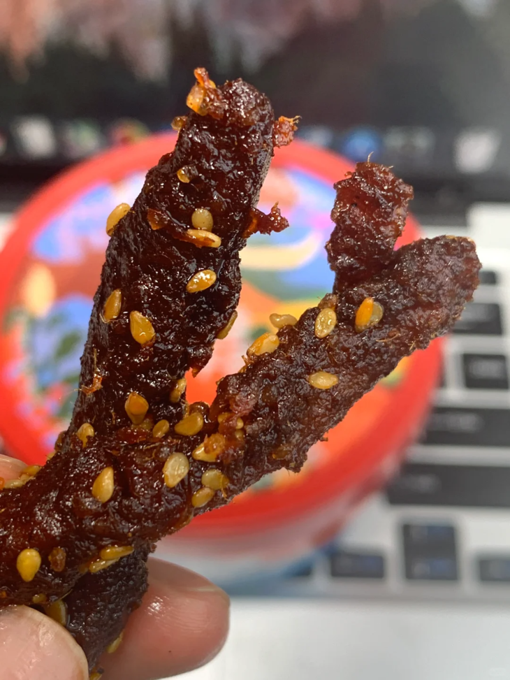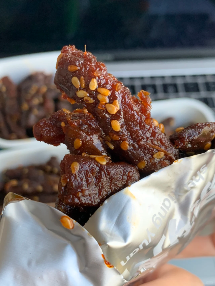 选品会试吃过后,这款牛肉条已经是我们办公室的人手必囤了,我也不例外。