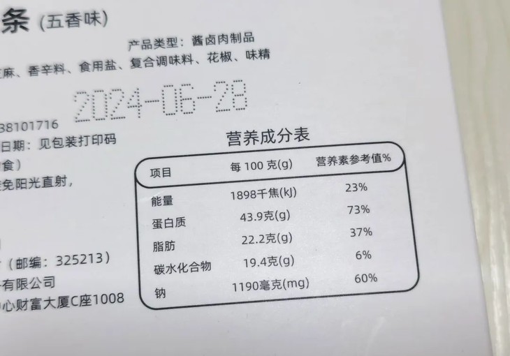 牛肉的蛋白质含量高,脂肪相对较低,这款牛肉条也是如此。