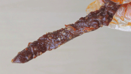 轻轻一撕,可以清晰地看到肉质纤维,有几丝麻几分辣的纯粹肉香味,真要把人“迷”晕……