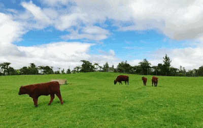 小牛吃着草原上自然生长的牧草,漫山遍野地跑,锻炼出一身强健的肌肉。