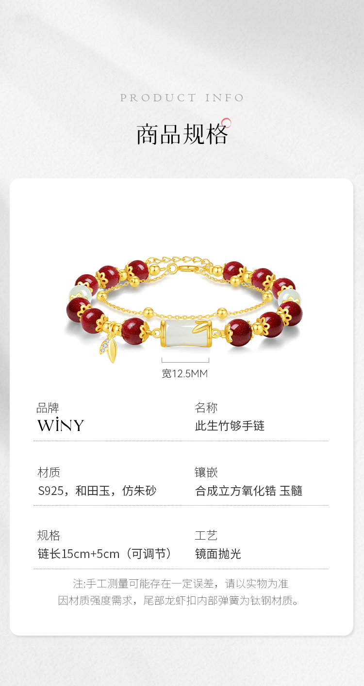 Winy925纯银此生竹够手链送女友闺蜜节日生日礼物