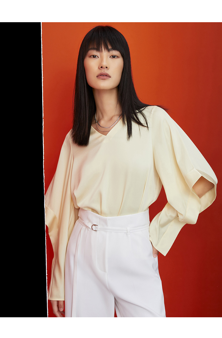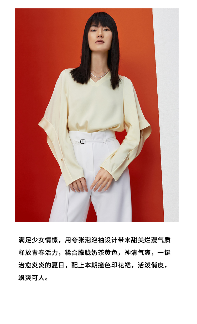 VIMAGE纬漫纪女装时尚百搭小上衣长袖纯色小上衣V1513105