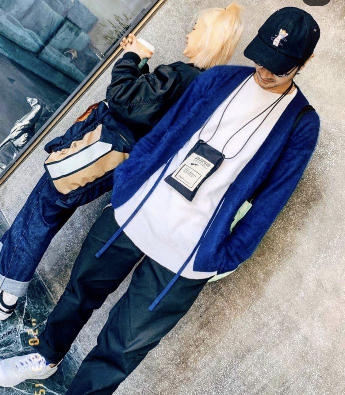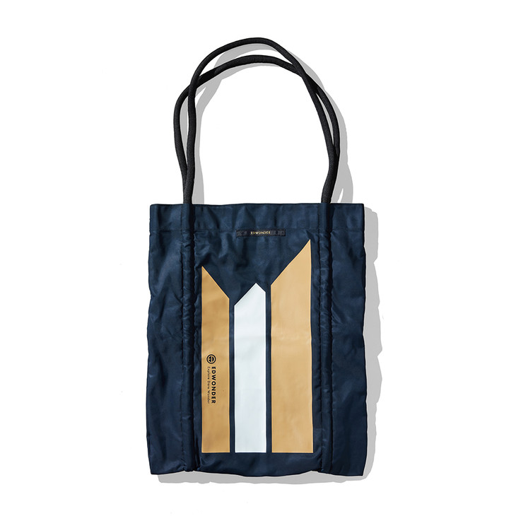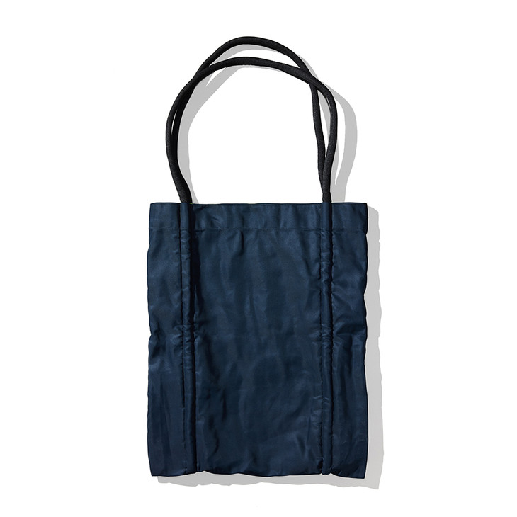 金白“W”透视图案,搭配海军蓝色和荧光绿双面包身。顶部设计柔软双抽绳手柄,可正反双面使用,荧光绿侧设有储物小口袋,男女皆适用。