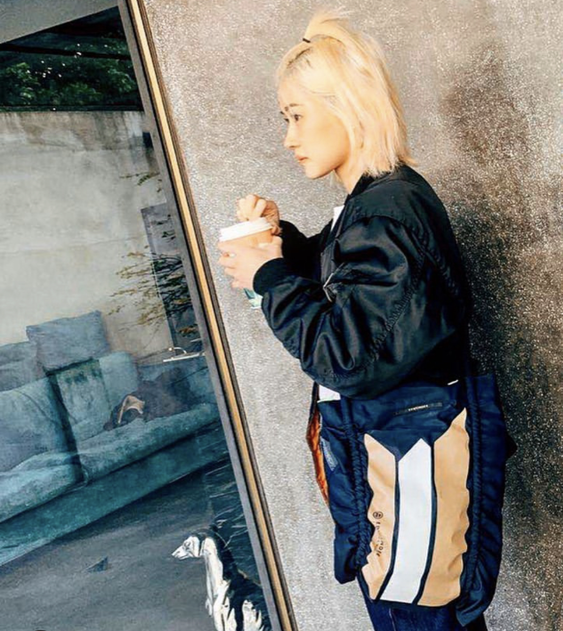 荧光绿 + 双面抽绳单肩包