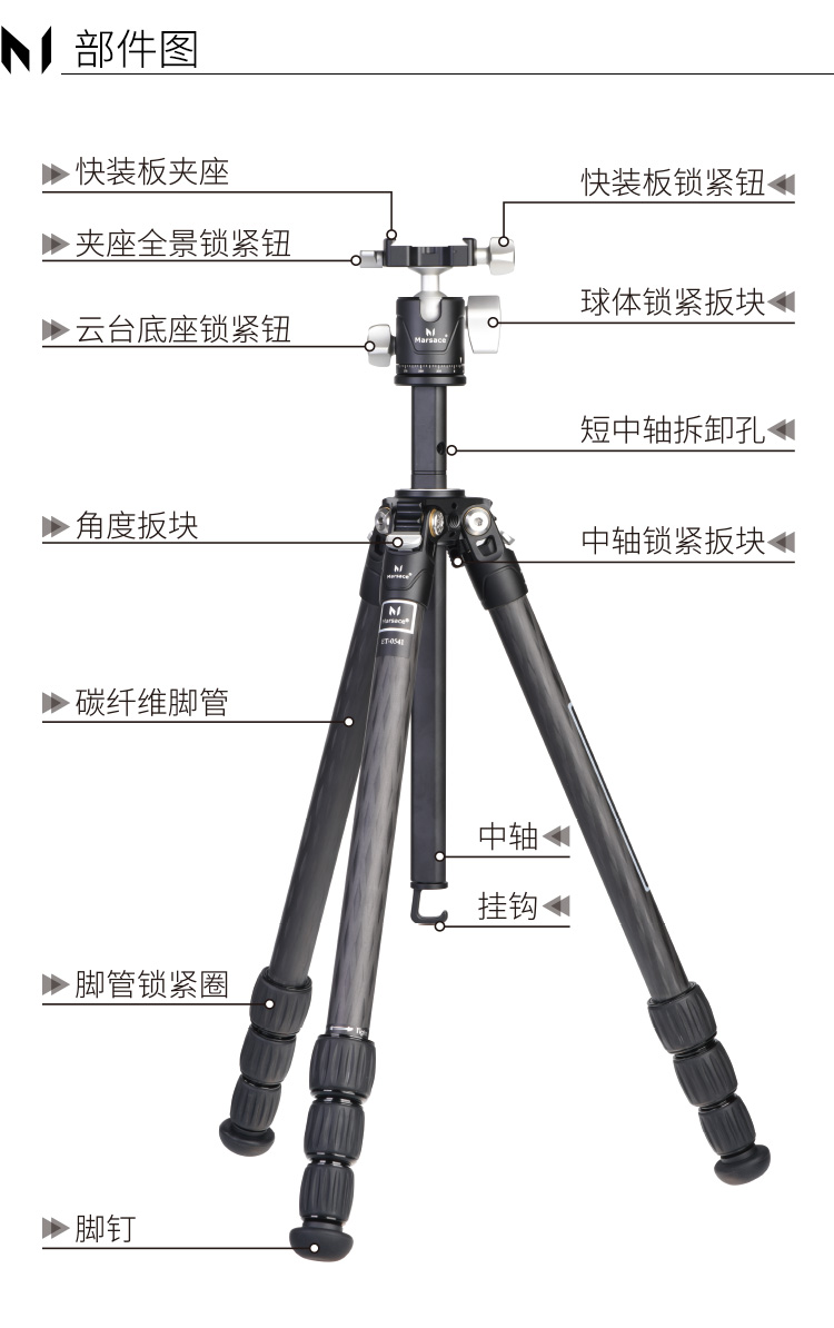 马小路Marsace ET-0541 ET-1541 球形云台 碳纤维轻便三脚架套装 入门级稳定款