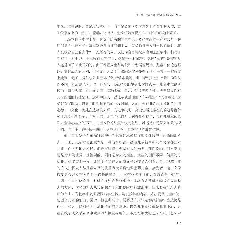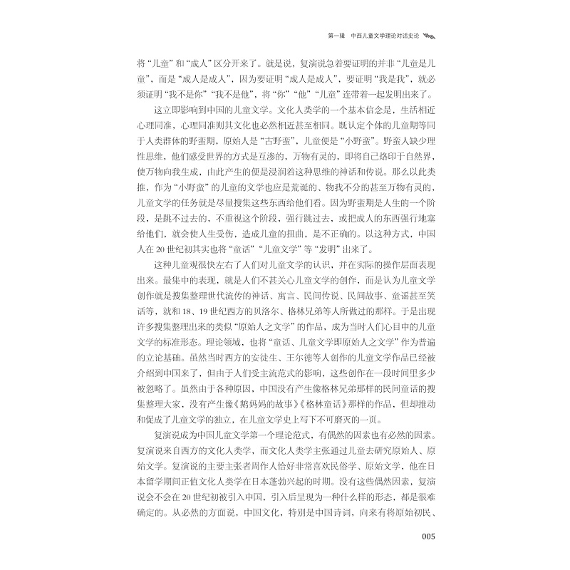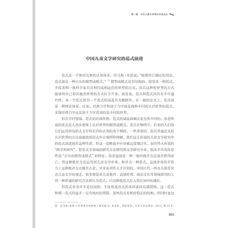 本书是一部以论述中西儿童文学理论的交互影响为主旨的论著。全书研究的时间维度自20世纪初直至21世纪,理论范畴涉及文化人类学、儿童本位论、后现代主义、后殖民主义等。作者在梳理中国儿童文学理论中的一些主要范式的基础上,重点聚焦于对佩里·诺德曼理论的探讨。佩里·诺德曼是当代加拿大著名的儿童文学理论家,其《儿童文学的乐趣》、《隐藏的成人:定义儿童文学》、《说说图画:儿童图画书的叙事艺术》等译成中文后,在儿童文学理论界引起广泛反响,本书围绕诺德曼理论中一些主要观点,探讨中国儿童文学理论范式从传统到现代、后现代的转变,有借鉴,亦有批判。作者希望在与西方理论的对话中,探索中国儿童文学理论的发展之路。