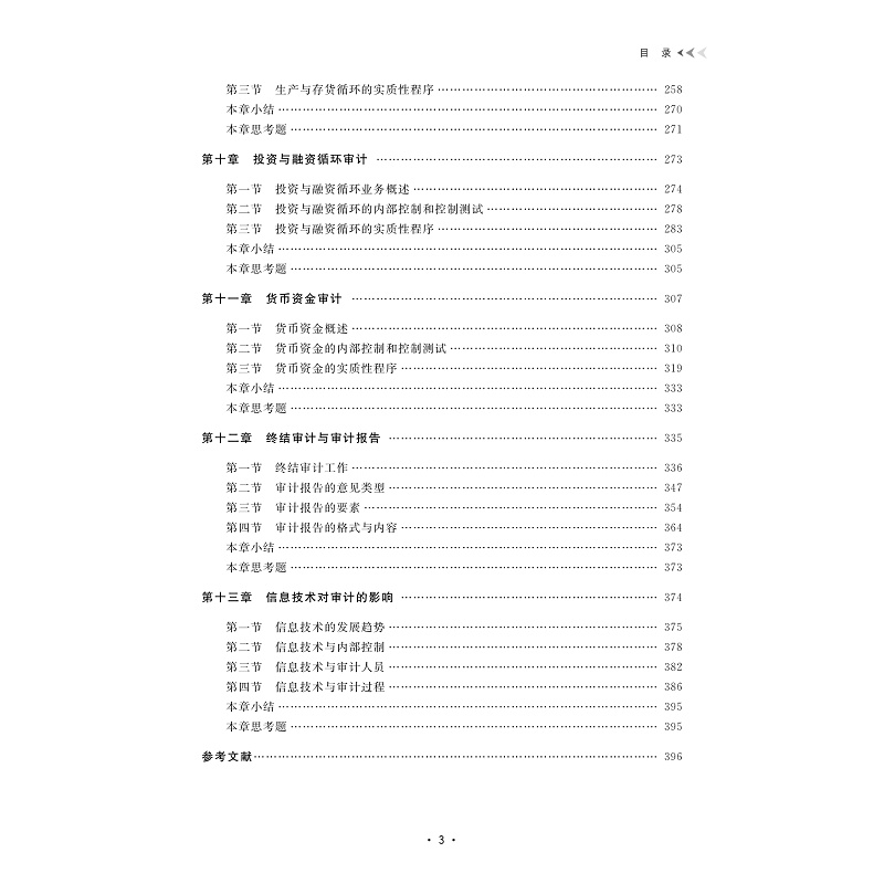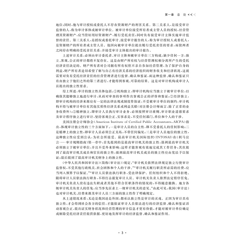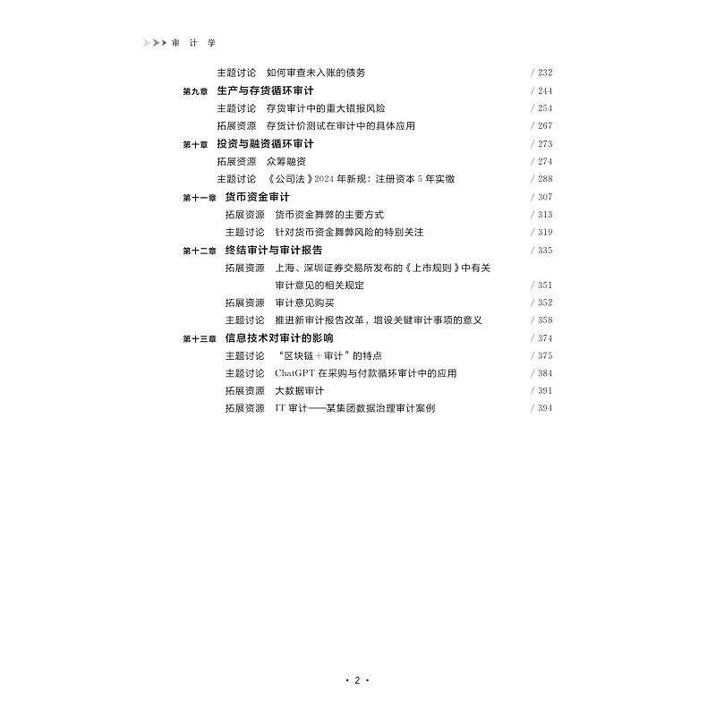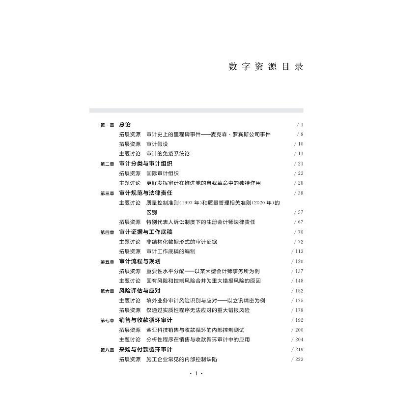 本教材以注册会计师审计为主线,兼顾内部审计和国家审计,以财务报表审计为基础介绍审计的基本概念、基本原理、基本方法和基本实务。全书包括13章,按照“基础知识、基本流程、实务应用、未来展望”四个层次逐级递进,通过本书的学习,目的是让学生熟悉审计准则和相关法律法规,掌握审计的基本原理和方法,了解审计工作的程序和特点,同时也培养学生踏实严谨的工作作风和综合分析能力,为日后从事相关专业工作积淀良好的职业素养。