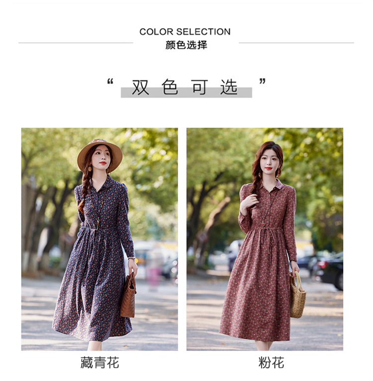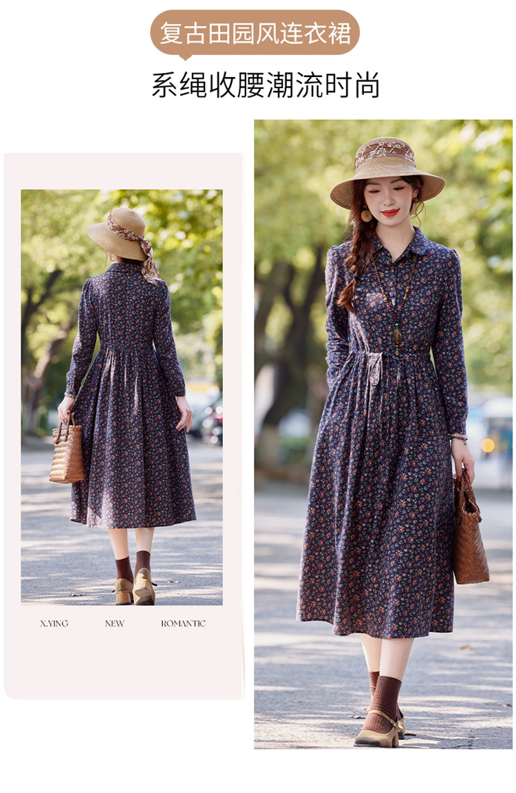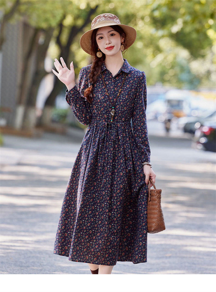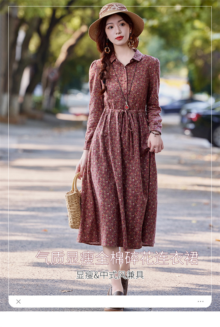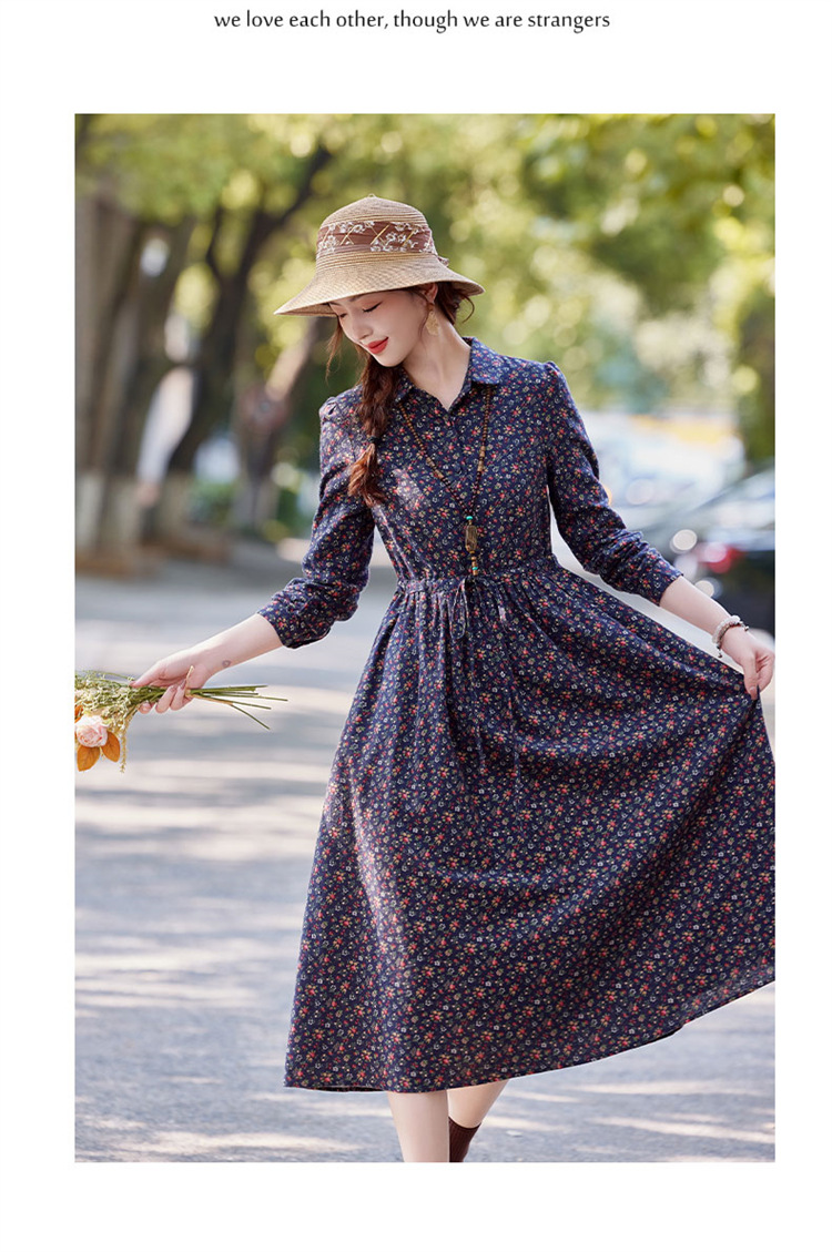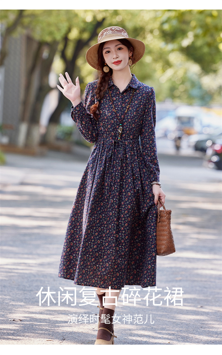 SYY8001全棉碎花中长款连衣裙女长袖2025新款休闲文艺春秋减龄衬衫裙子 商品图3