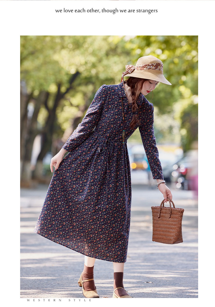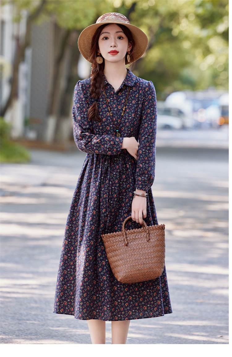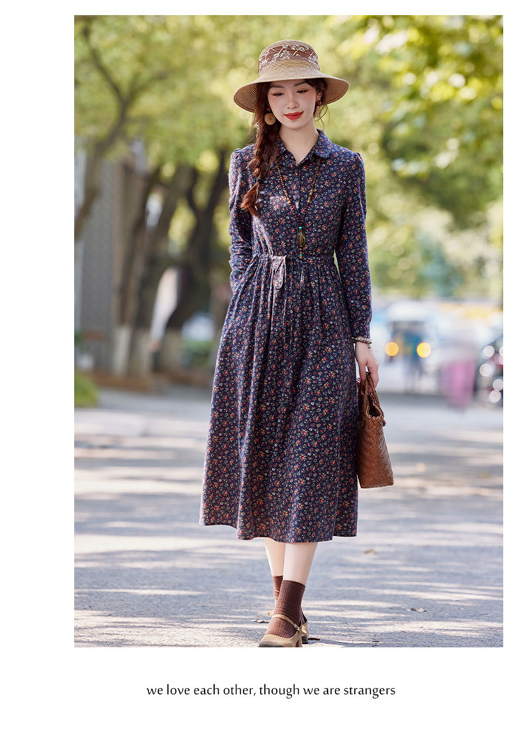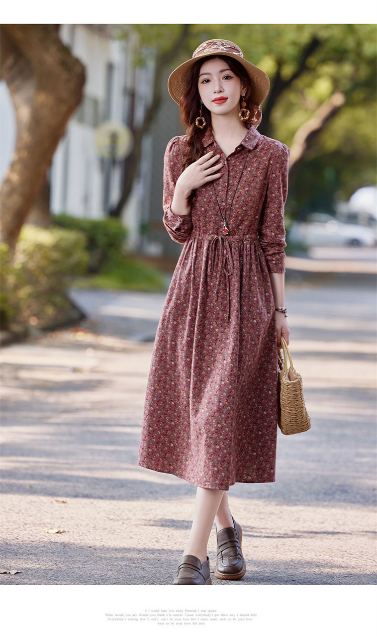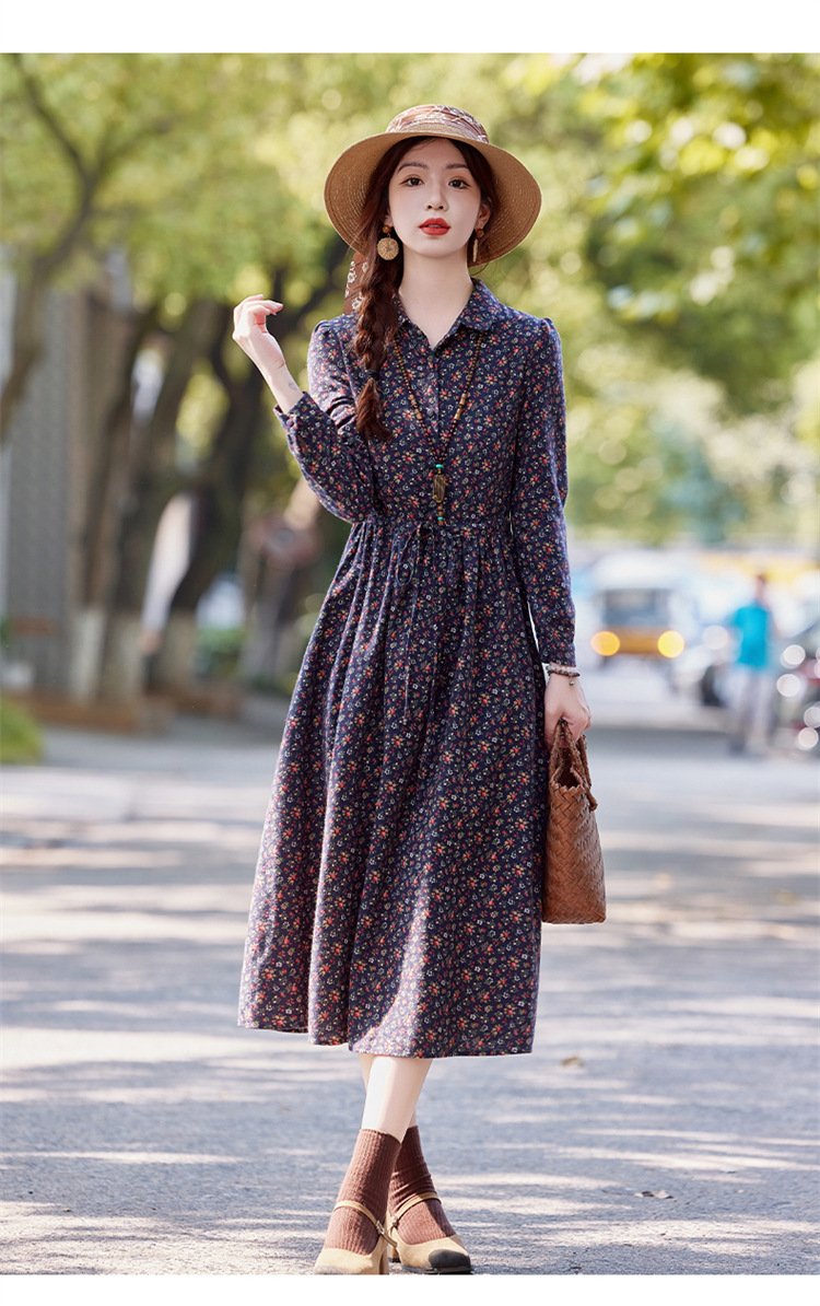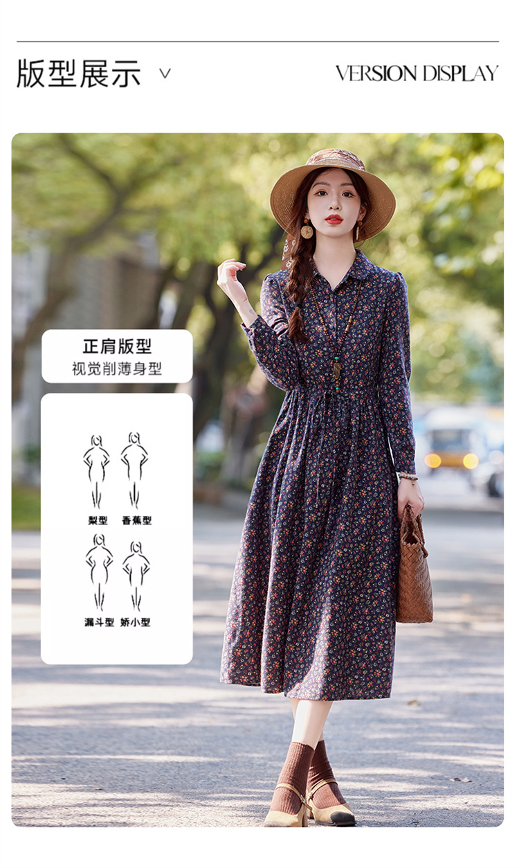 SYY8001全棉碎花中长款连衣裙女长袖2025新款休闲文艺春秋减龄衬衫裙子 商品图3