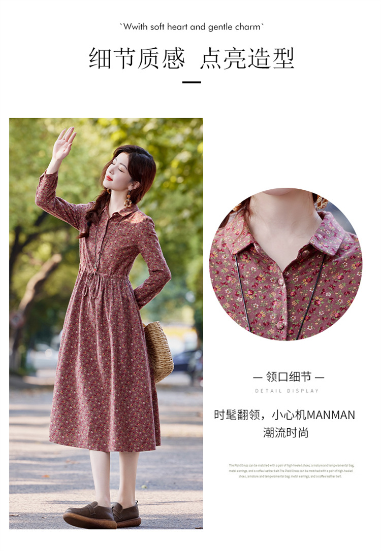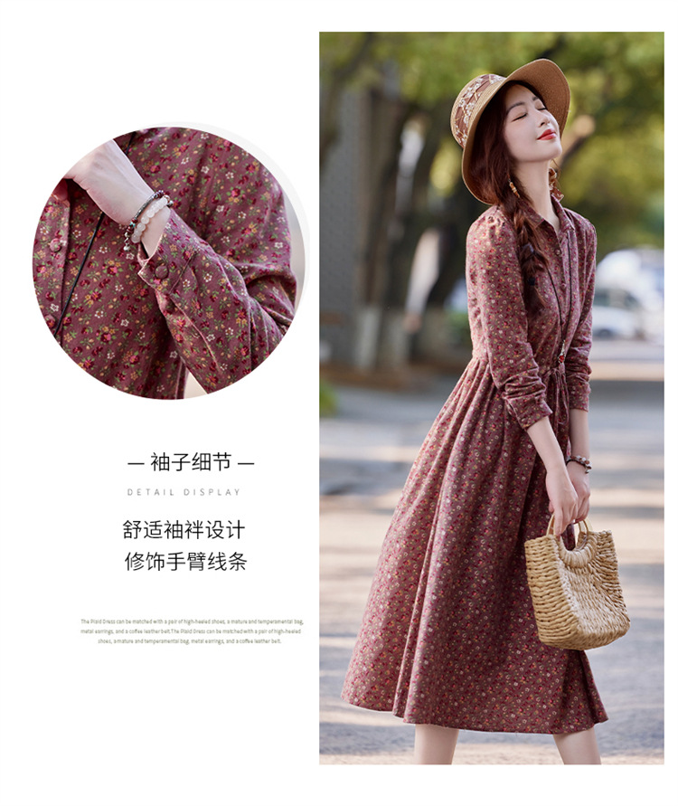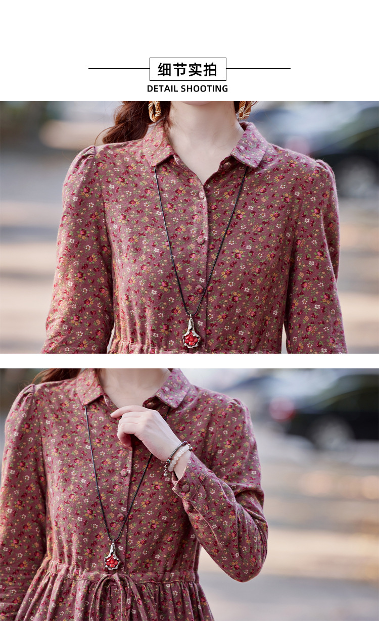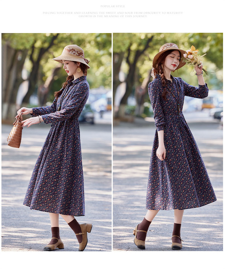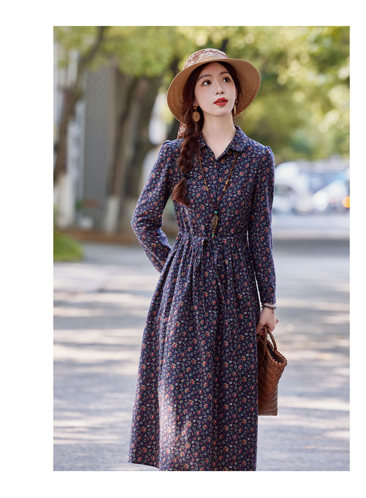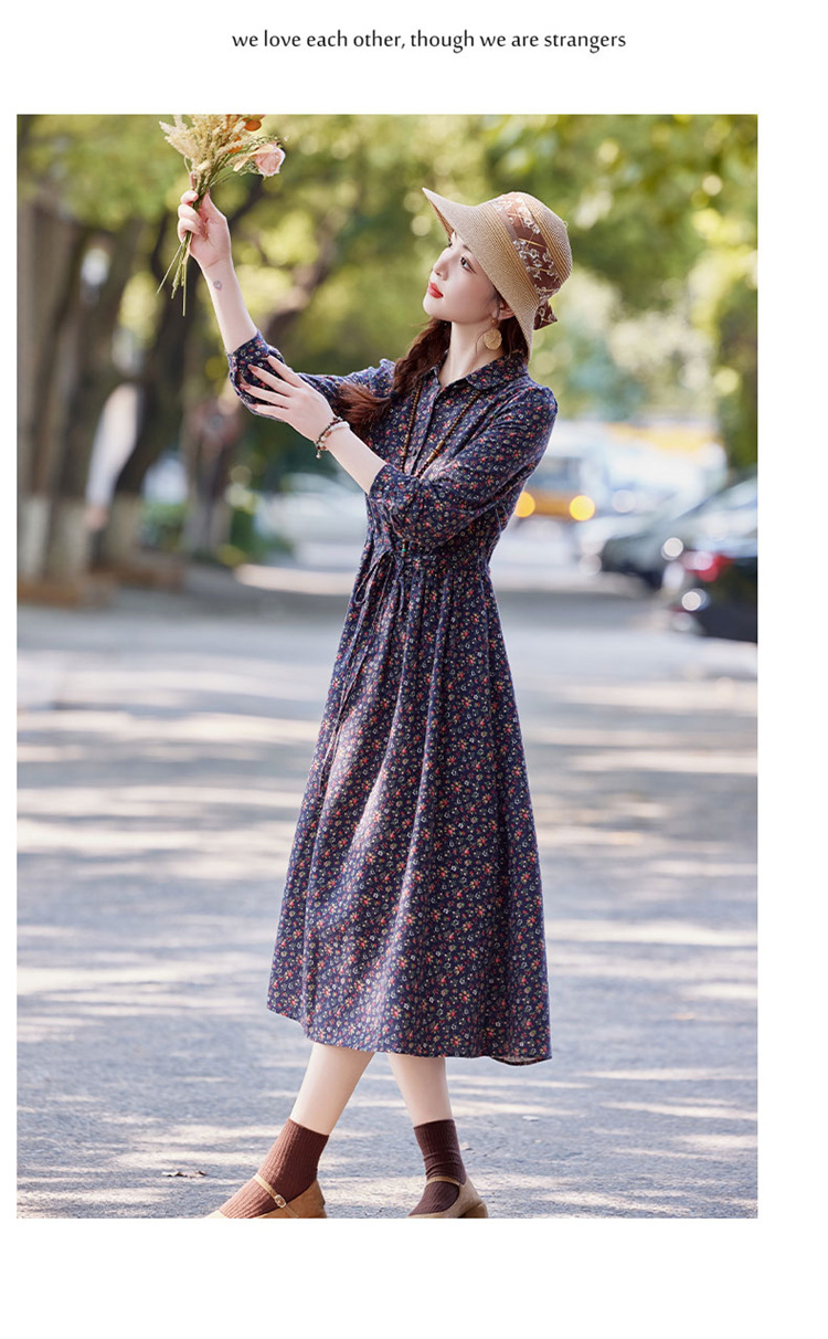 SYY8001全棉碎花中长款连衣裙女长袖2025新款休闲文艺春秋减龄衬衫裙子 商品图4