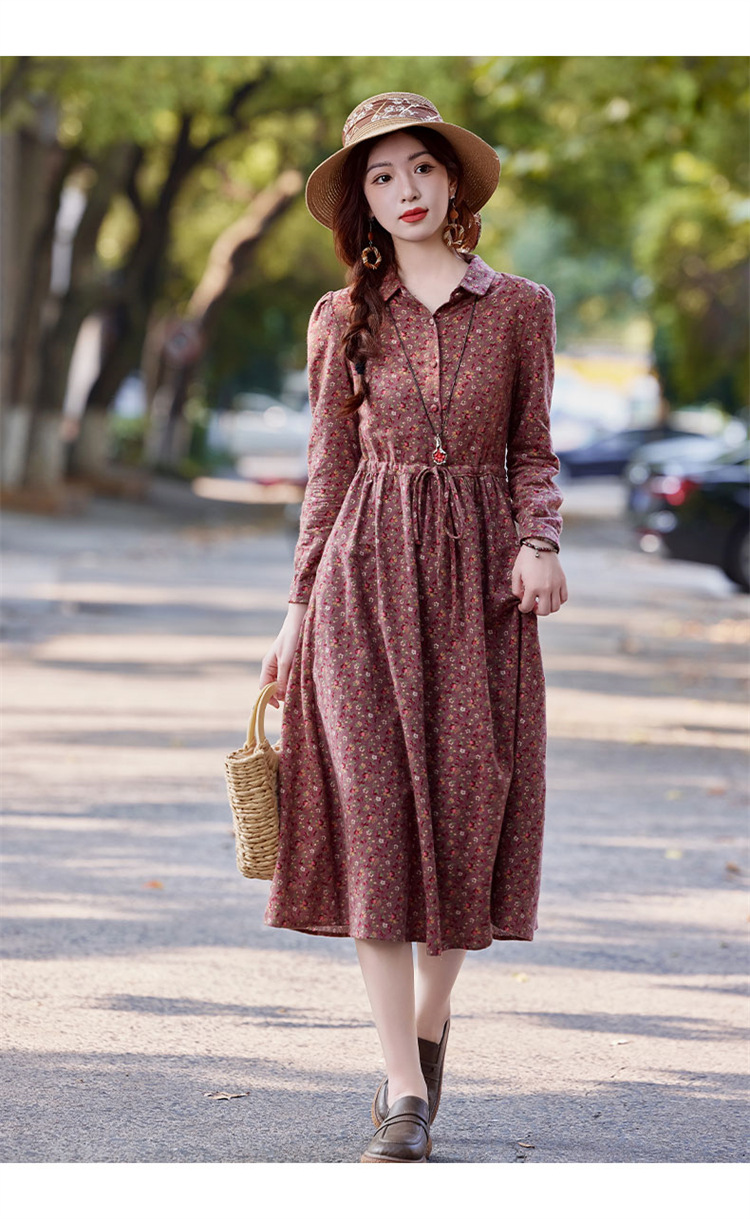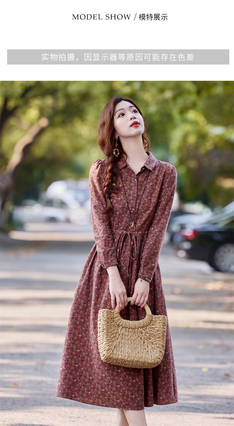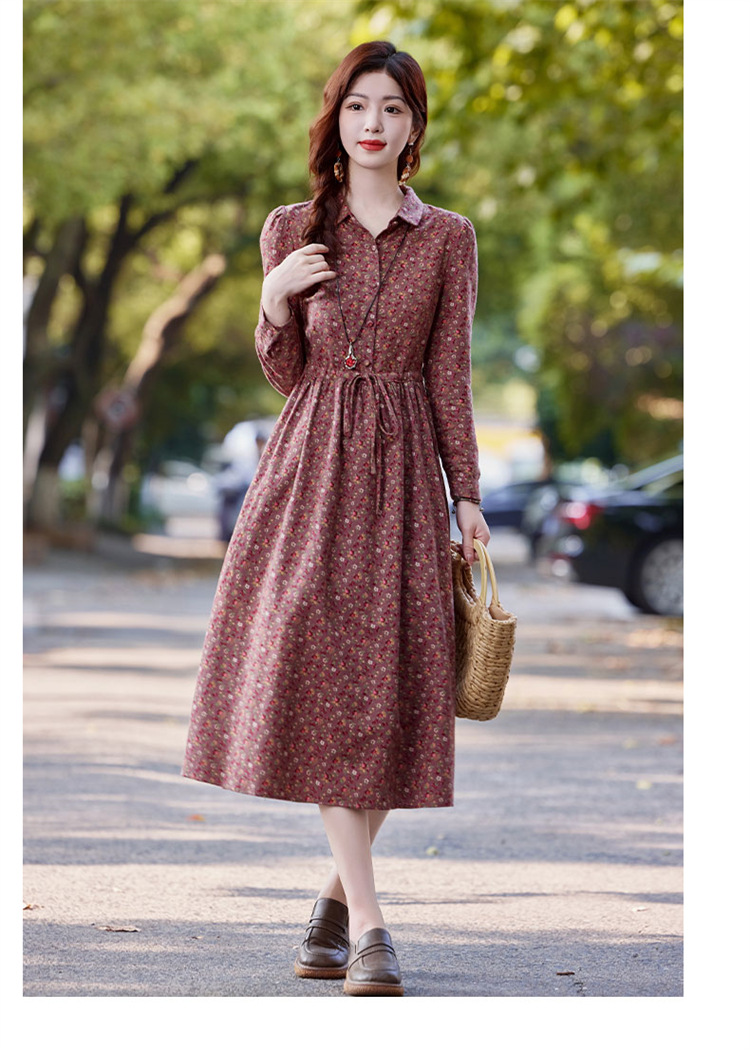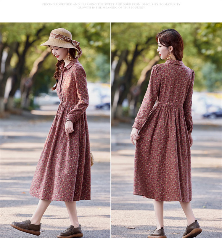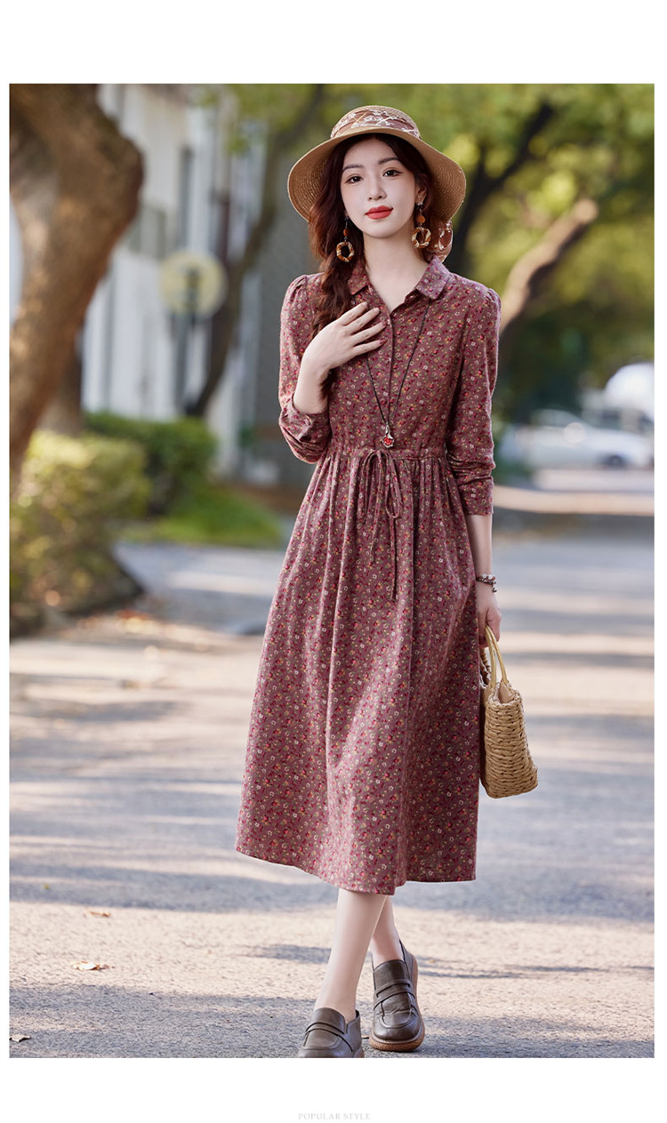 SYY8001全棉碎花中长款连衣裙女长袖2025新款休闲文艺春秋减龄衬衫裙子 商品图4