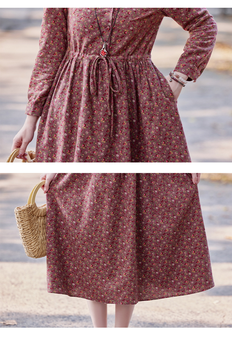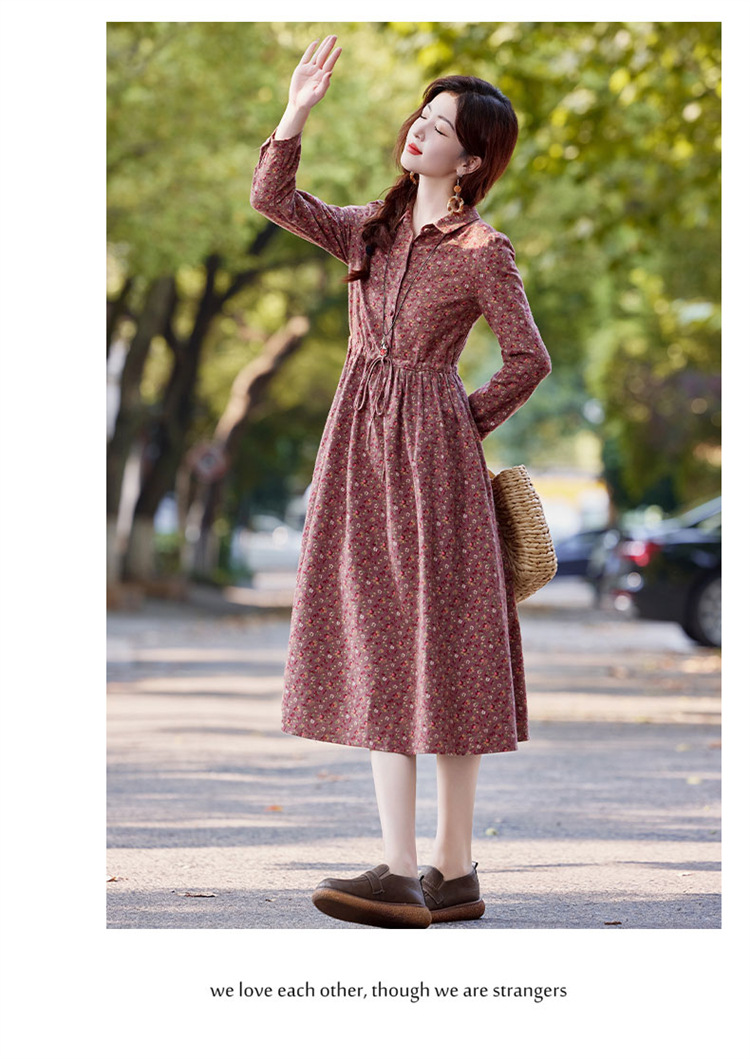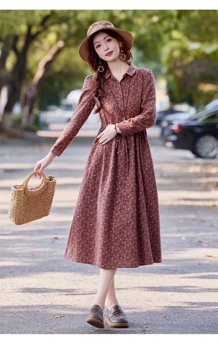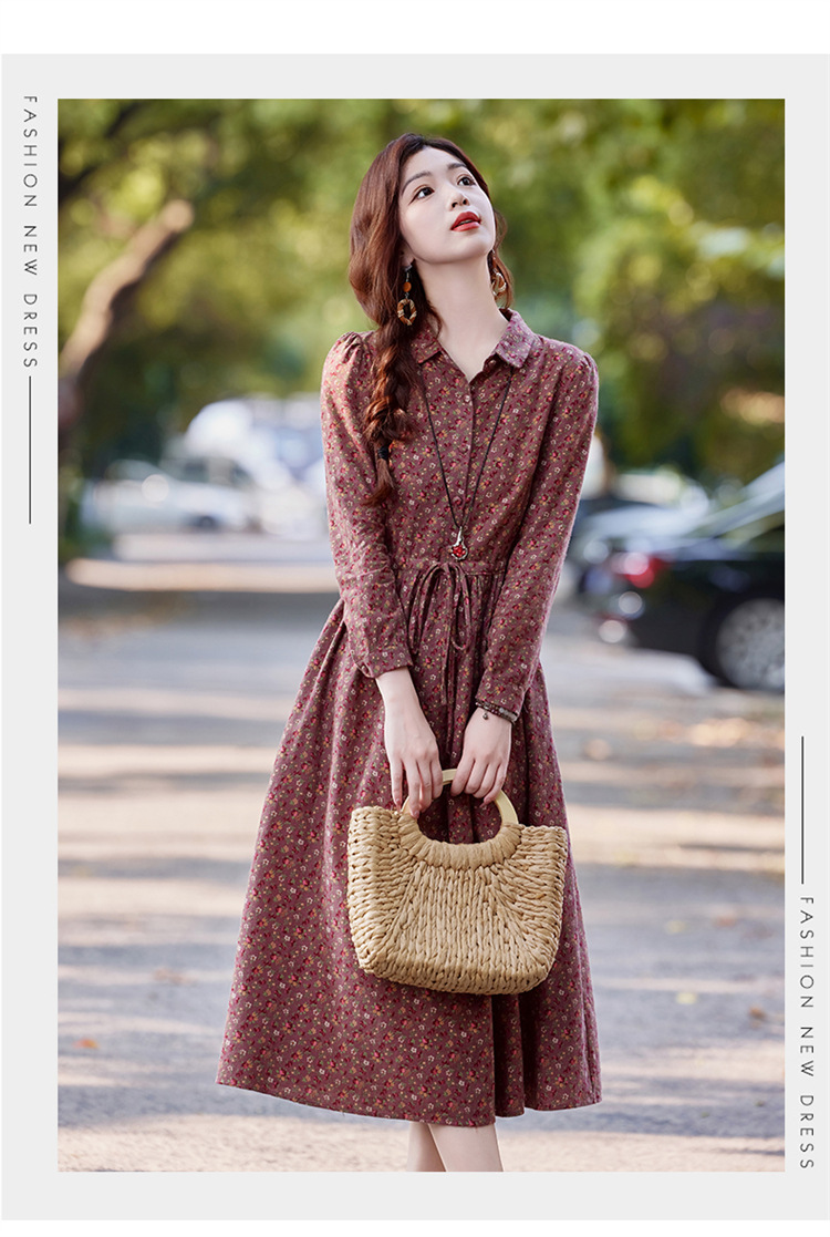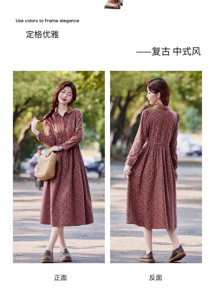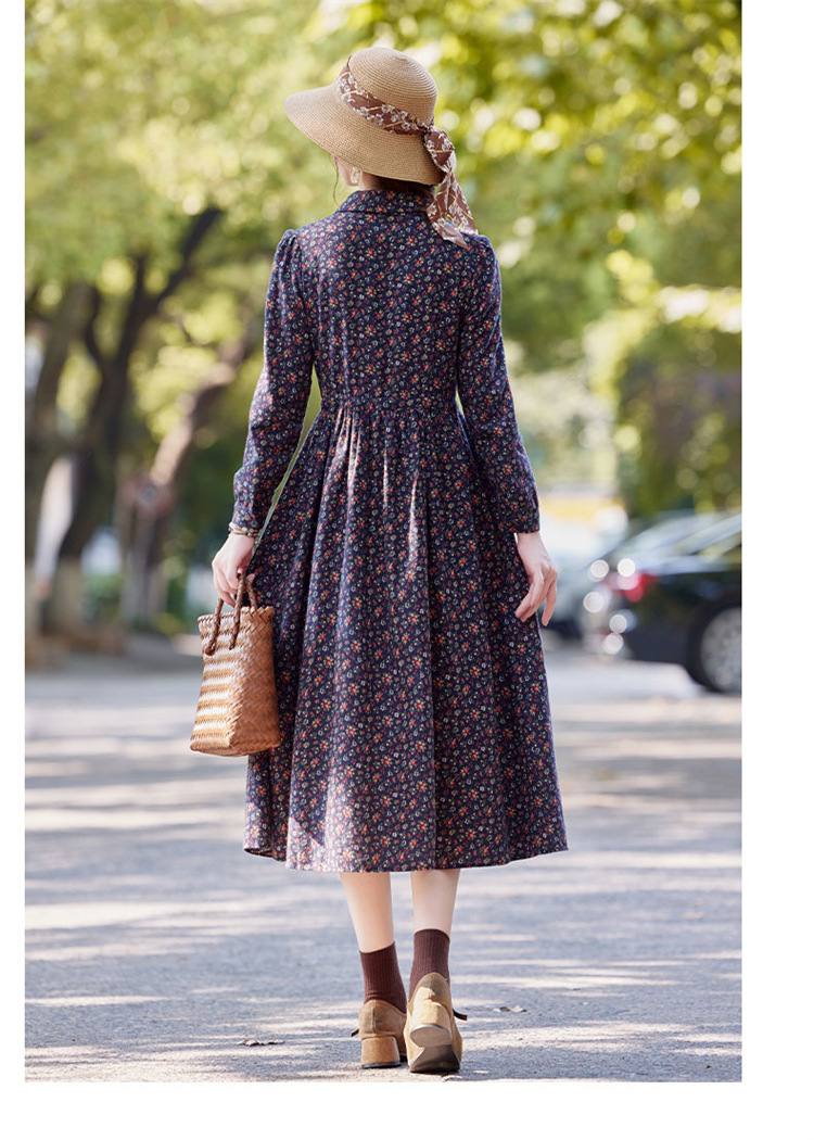 SYY8001全棉碎花中长款连衣裙女长袖2025新款休闲文艺春秋减龄衬衫裙子 商品图4