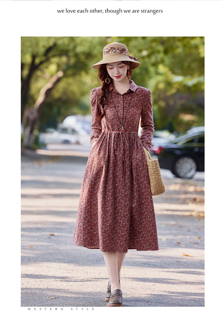 SYY8001全棉碎花中长款连衣裙女长袖2025新款休闲文艺春秋减龄衬衫裙子 商品图0