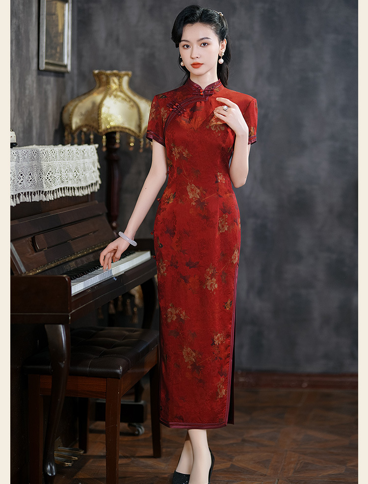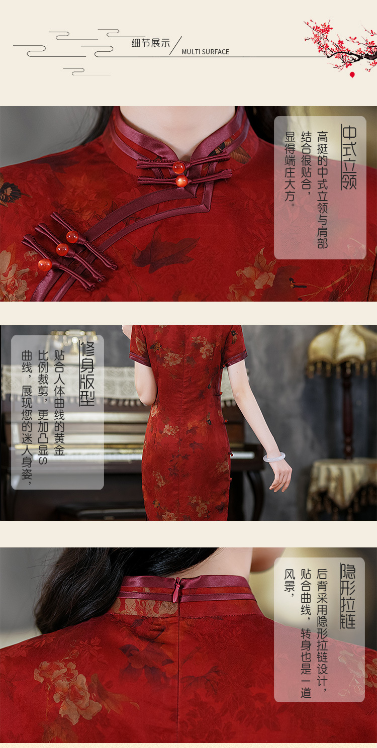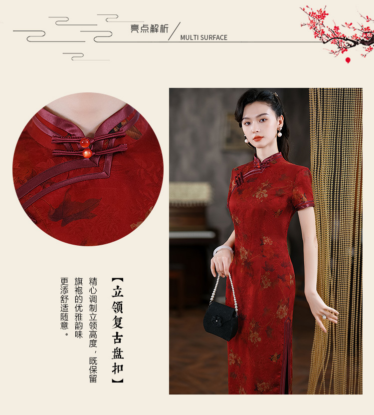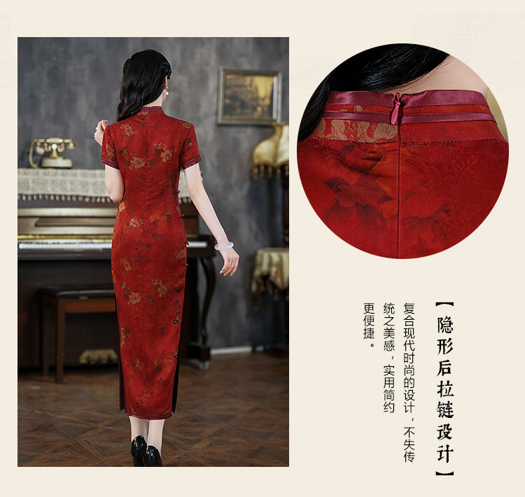 C9004春夏秋冬新款旗袍裙长款旗袍两件套表演礼服