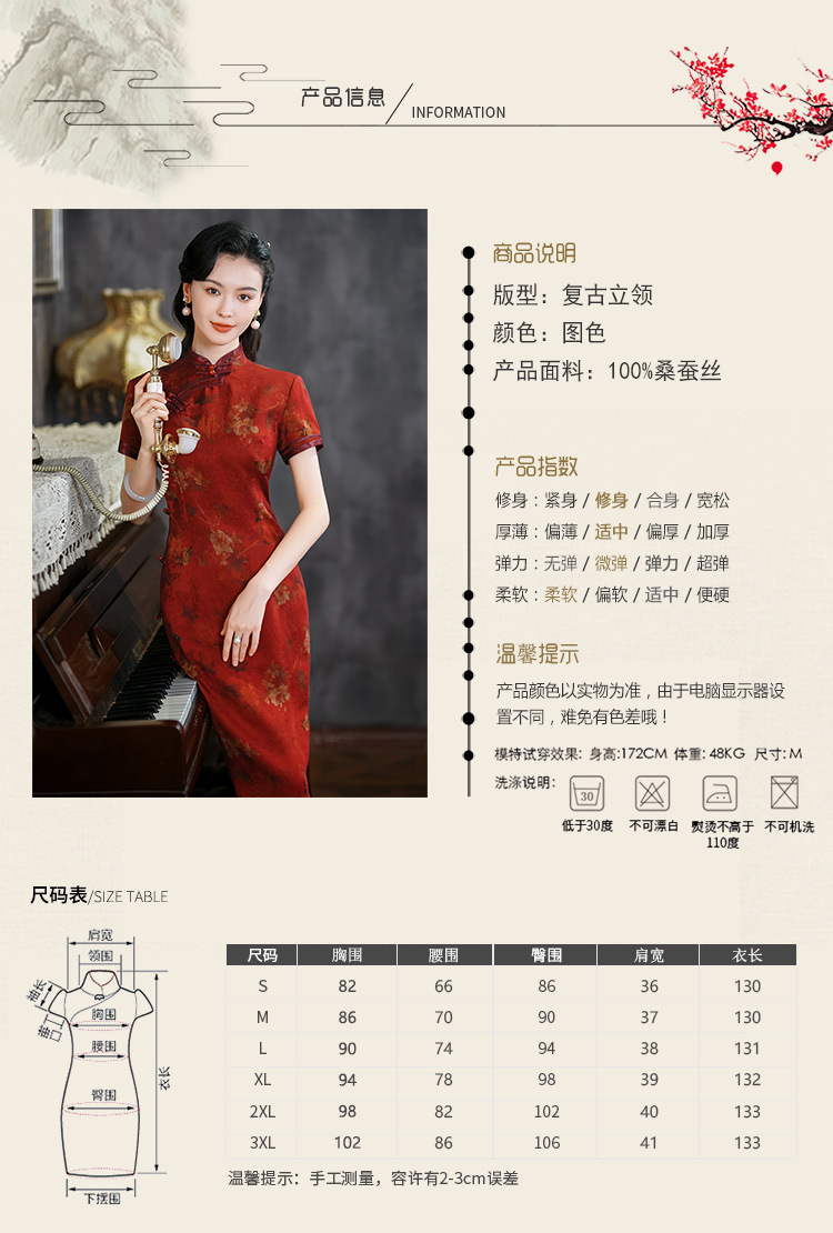 B1416真丝旗袍长款2025季新款改良桑蚕丝复古时尚少女中国风连衣裙