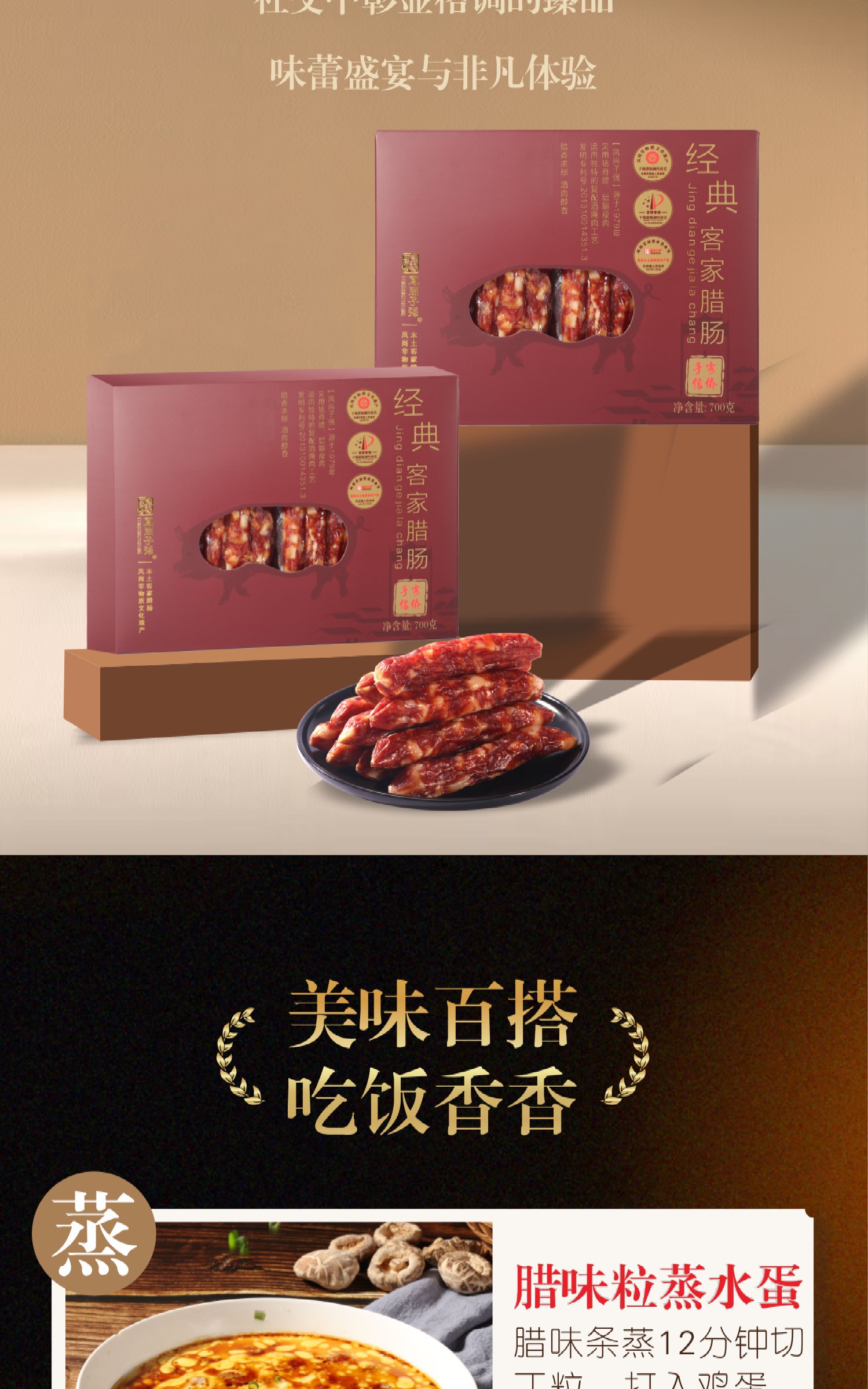 经典客家腊肠(袋装) 500g/袋 真空包装