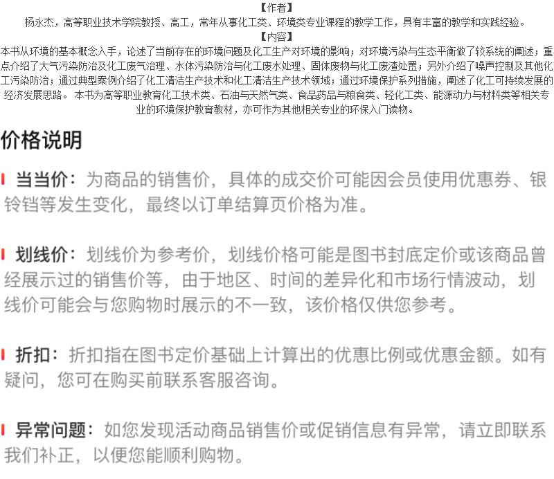 正版书籍 化工环境保护概论(第三版) 杨永杰、涂郑禹 主编化学工业出版社9787122403490